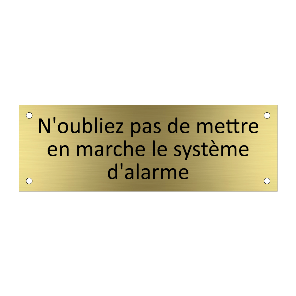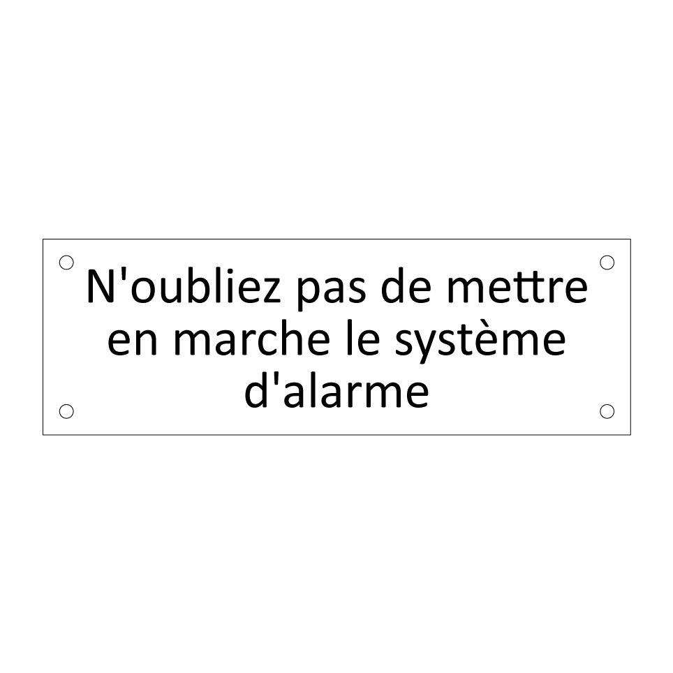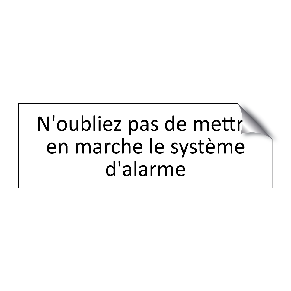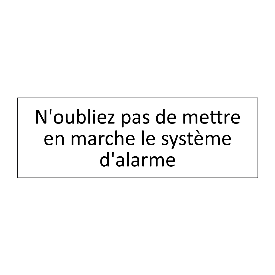 Panneau d'information avec le texte N'oubliez pas de mettre en marche le système d'alarme.