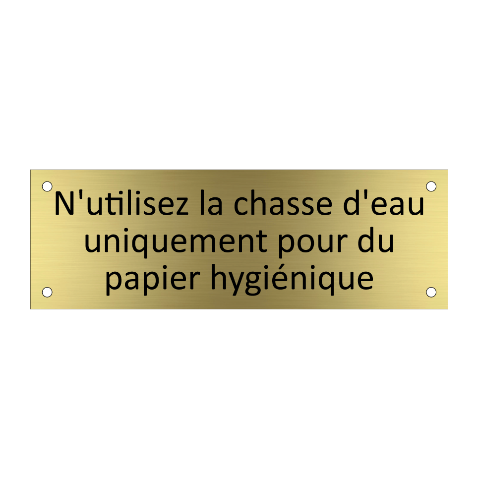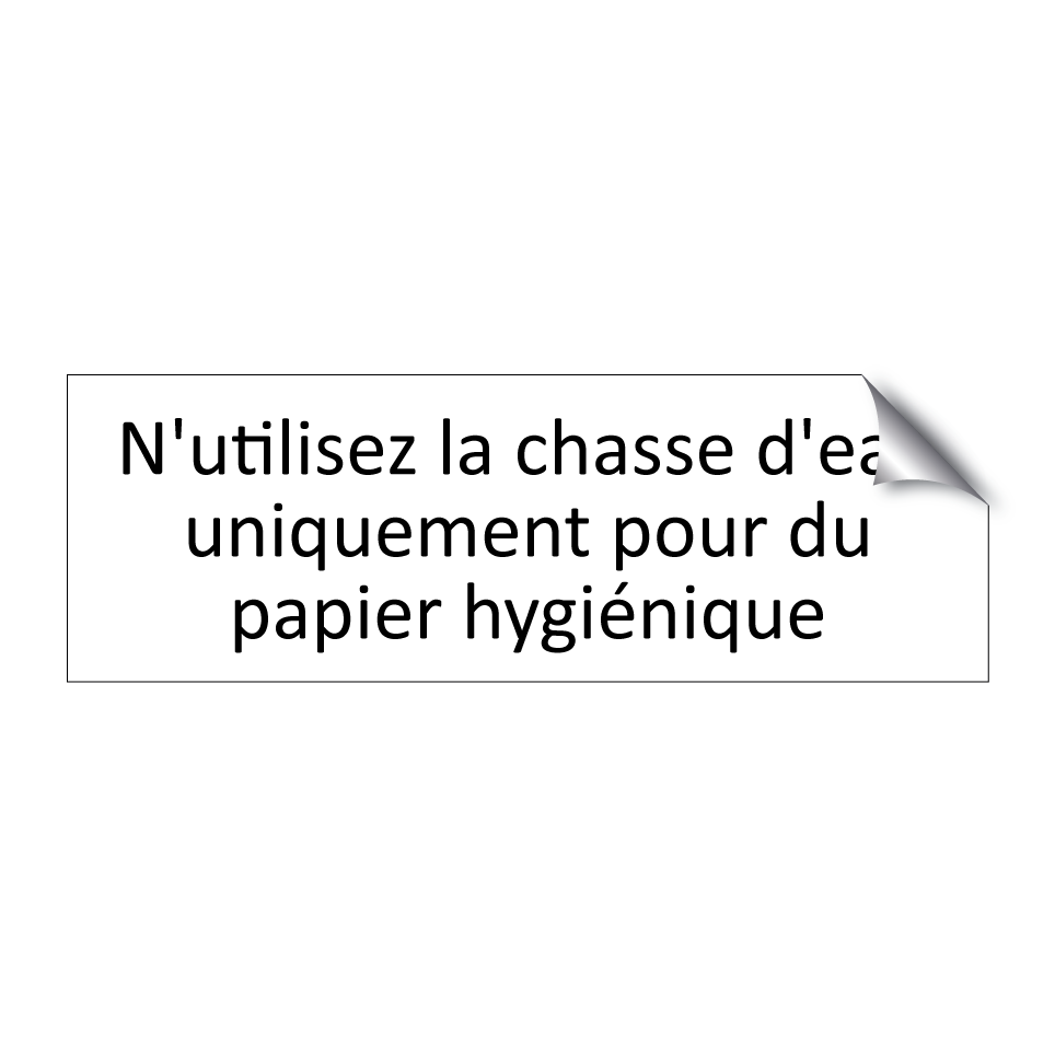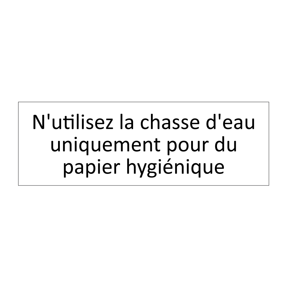 Panneau d'information avec le texte N'utilisez la chasse d'eau uniquement pour du papier hygiénique.