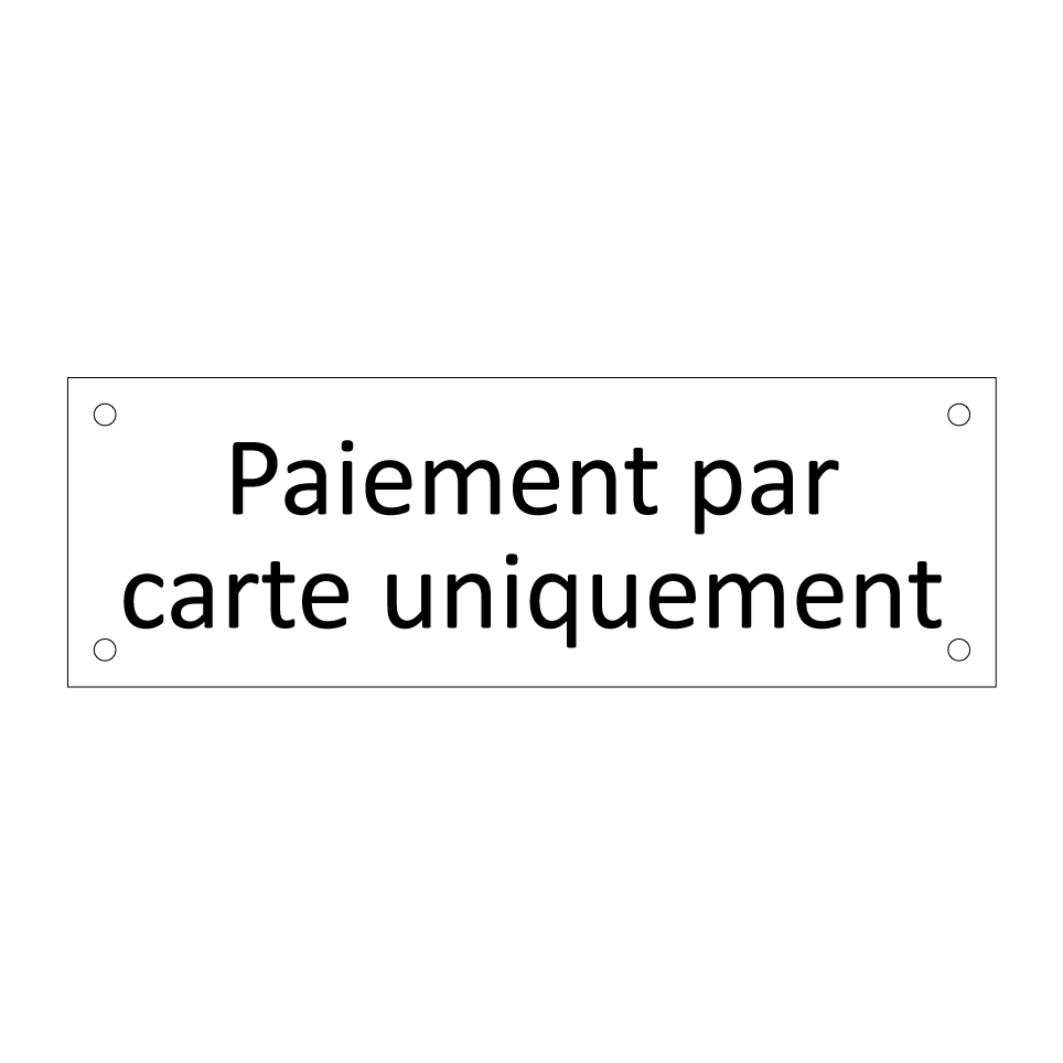 Cette enseigne est idéale pour les commerces et établissements qui souhaitent informer leurs clients que le paiement se fait exclusivement par carte bancaire. Elle peut être placée à l'entrée de votre magasin, près de la caisse ou dans toute autre zone visible pour garantir que le message est bien reçu par tous les visiteurs. En utilisant cette signalisation, vous facilitez le processus de paiement et évitez toute confusion, tout en améliorant l'expérience client. Parfaite pour les restaurants, boutiques et autres lieux de vente, elle assure une communication claire et efficace.