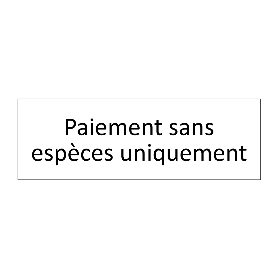 Panneau d'information avec le texte Paiement sans espèces uniquement.