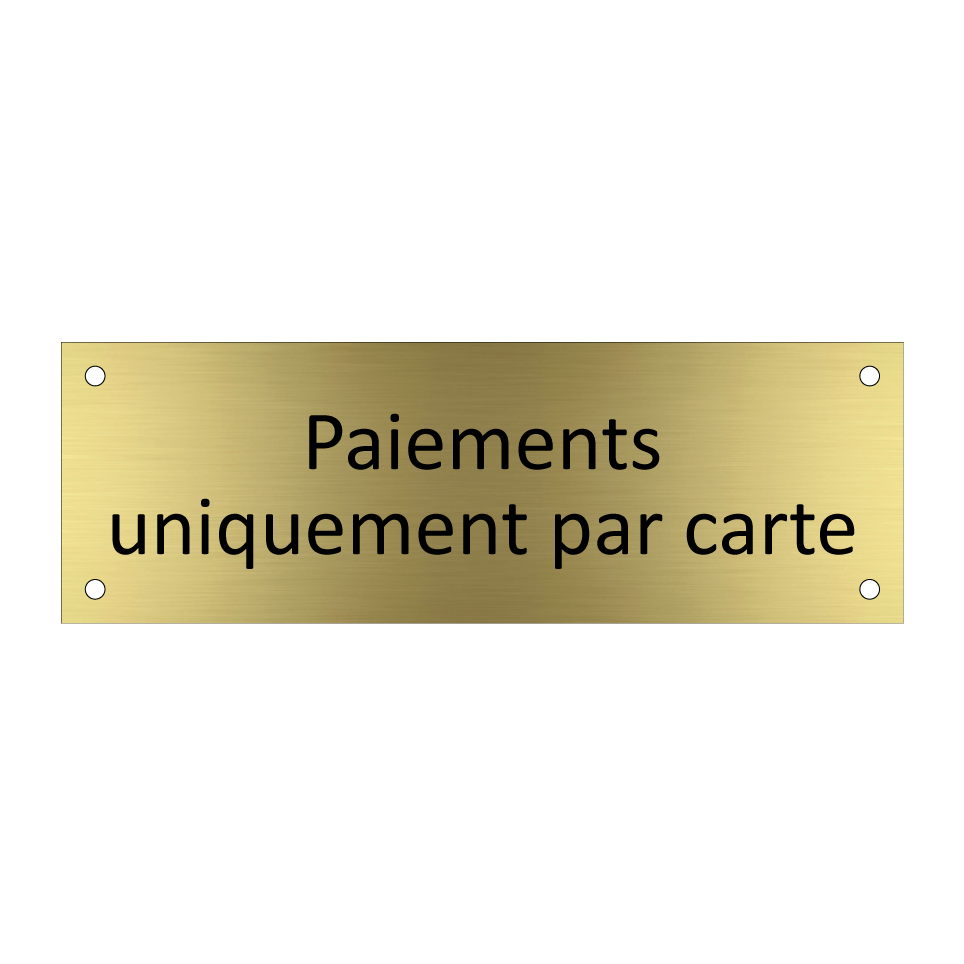 Cette enseigne est idéale pour les commerces modernes qui souhaitent simplifier leurs transactions en acceptant uniquement les paiements par carte. Elle peut être placée à l'entrée de votre boutique, près de la caisse ou dans tout autre endroit stratégique pour informer vos clients dès leur arrivée. En affichant clairement cette information, vous facilitez le processus d'achat et réduisez les files d'attente. Parfaite pour les restaurants, cafés, magasins de vêtements et autres établissements, cette signalisation contribue à une expérience client fluide et efficace.