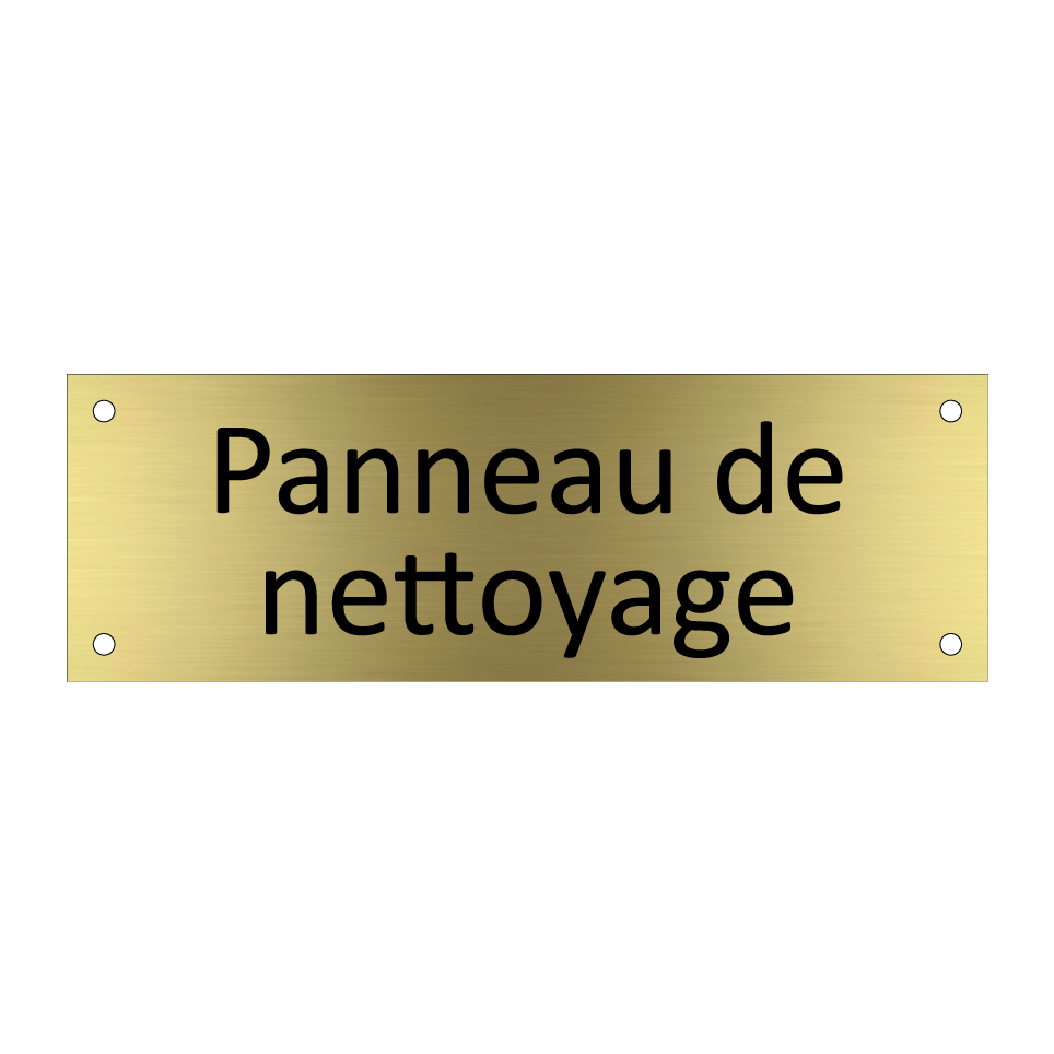 Ce panneau est disponible en Aluminium Brossé, Aluminium Aspect Laiton, Plastique et Autocollant.