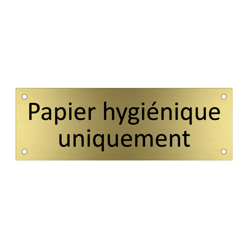 Panneau d'information avec le texte Papier hygiénique uniquement.