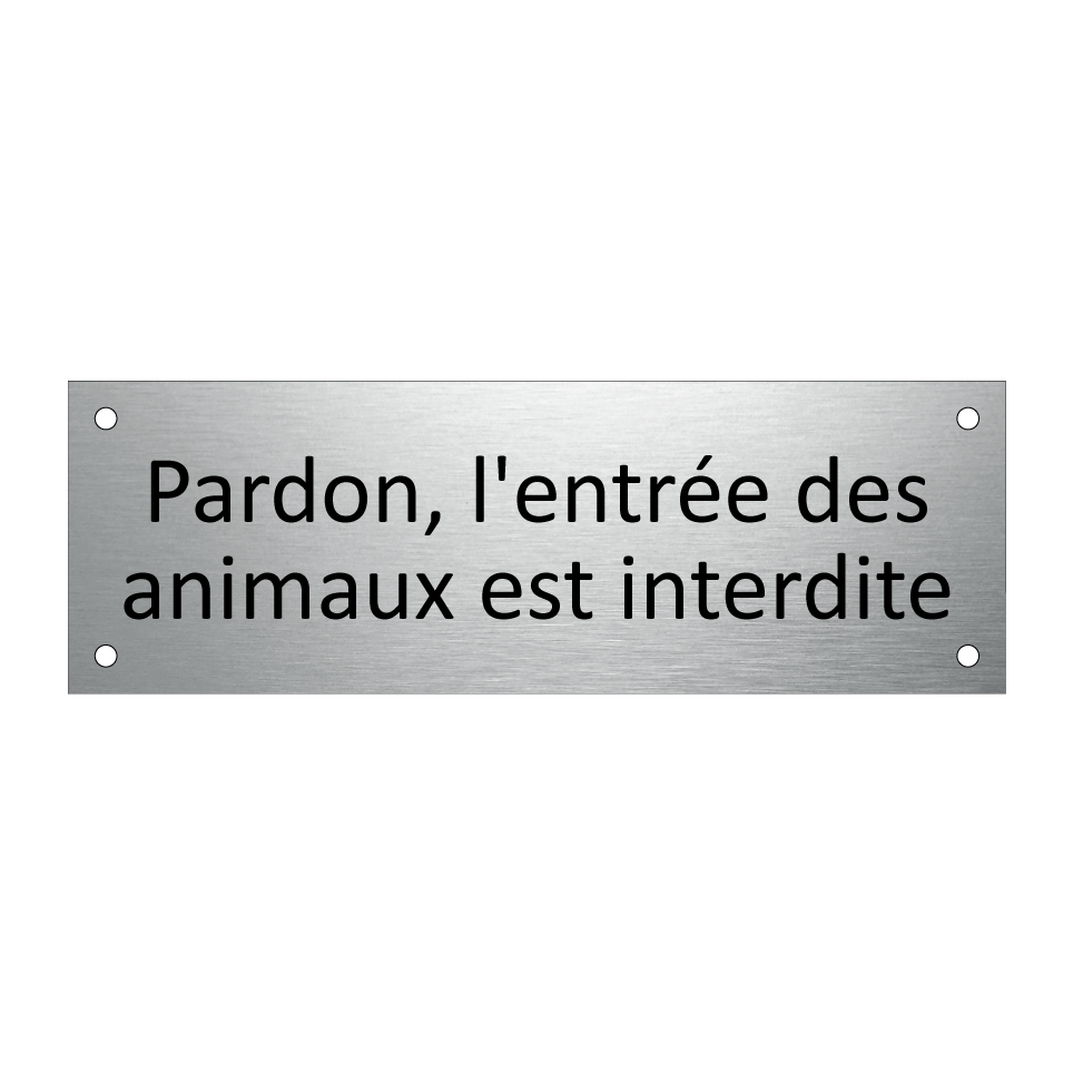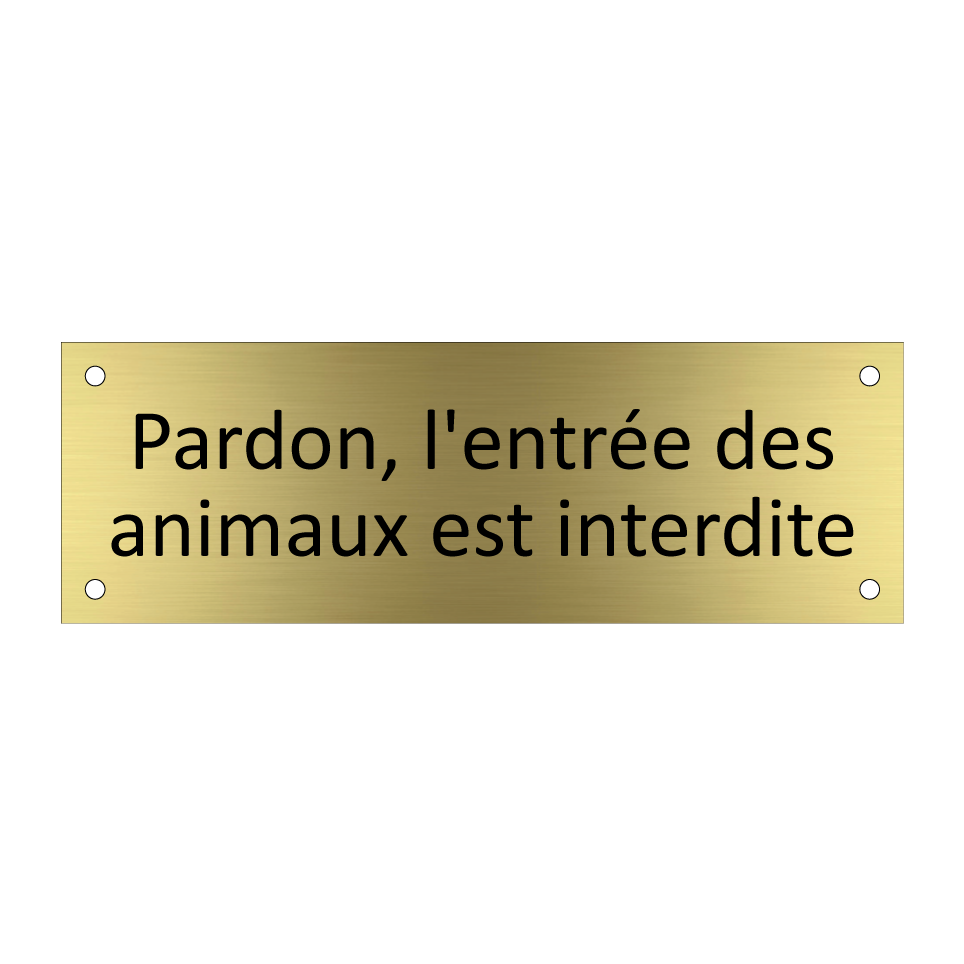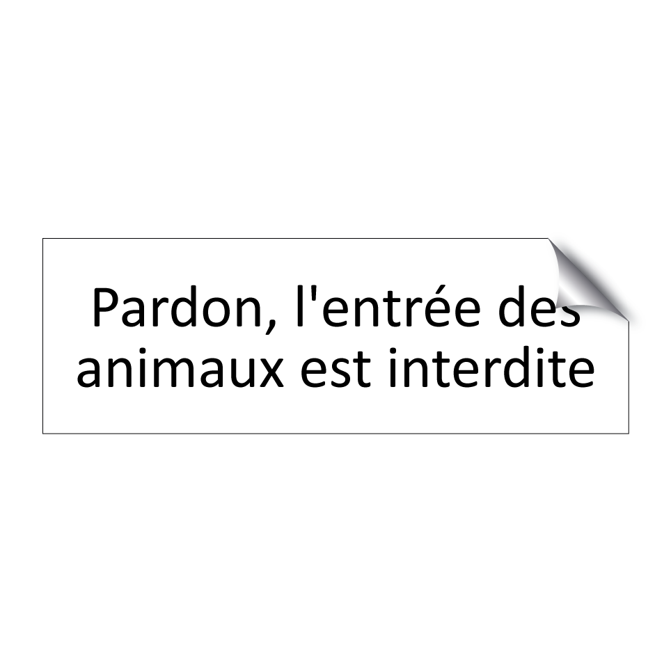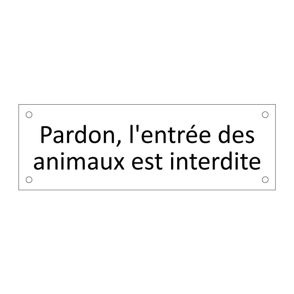 Panneau d'information avec le texte Pardon, l'entrée des animaux est interdite.