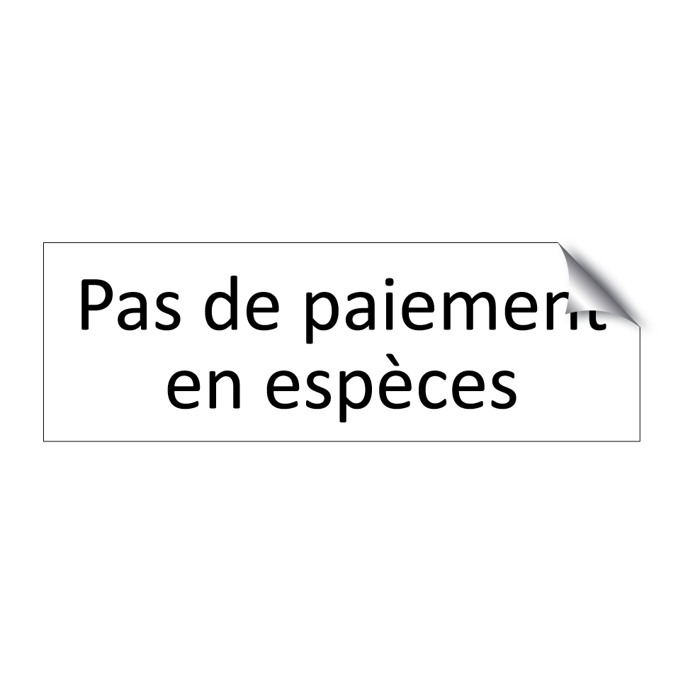 Panneau d'information avec le texte Pas de paiement en espèces.