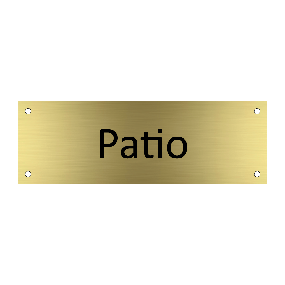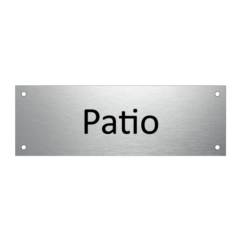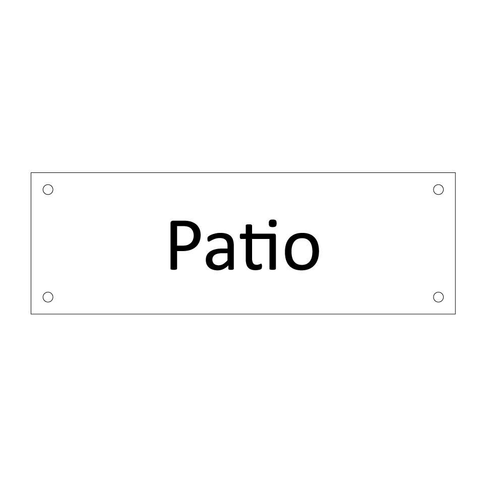 Panneau d'information avec le texte Patio.