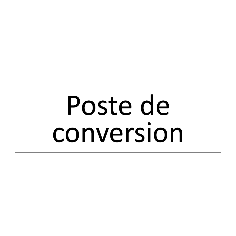Cette enseigne est idéale pour indiquer l'emplacement d'un poste de conversion dans des environnements industriels ou techniques. Elle peut être installée à l'entrée d'une salle dédiée à la conversion d'énergie ou à proximité d'équipements spécifiques pour guider le personnel et les visiteurs. Utilisée dans des usines, des centrales électriques ou des installations techniques, elle assure une signalisation claire et efficace. Placez-la à un endroit visible pour garantir une orientation optimale et faciliter la navigation au sein de vos installations.