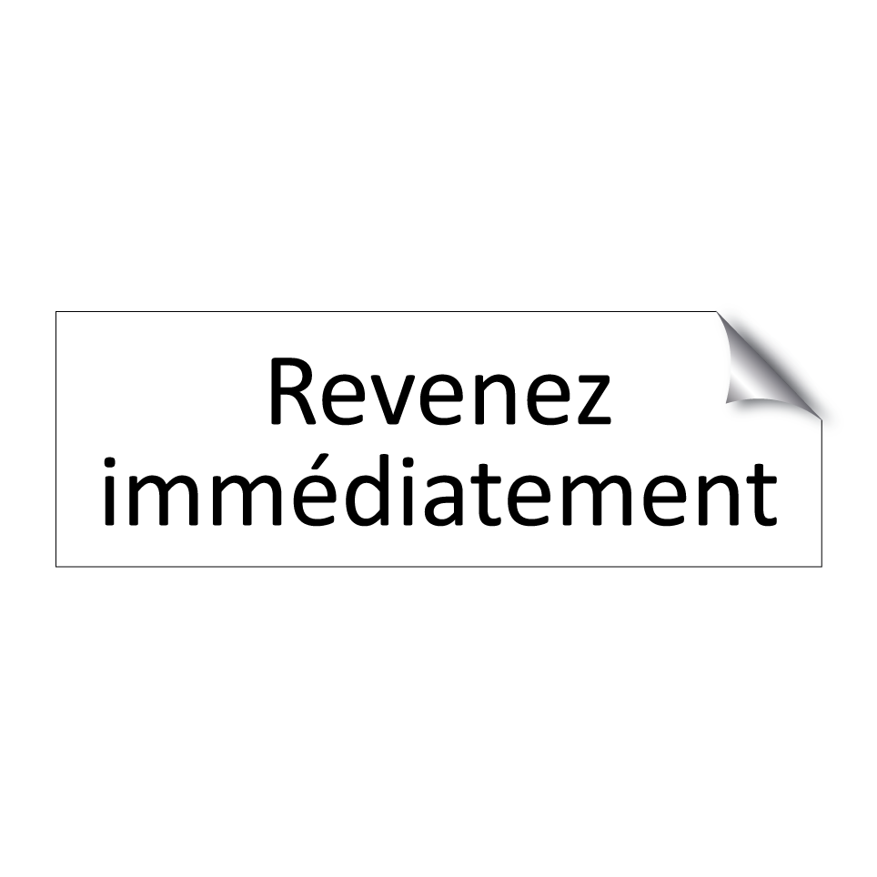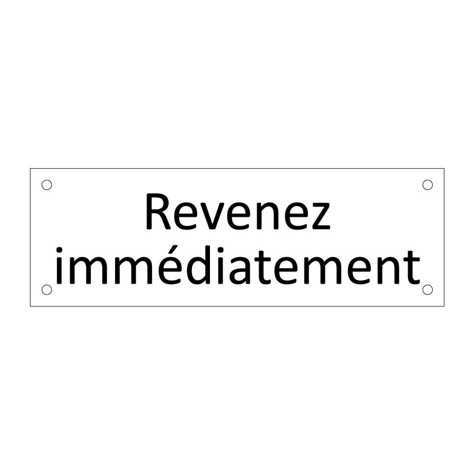 Panneau d'information avec le texte Revenez immédiatement.