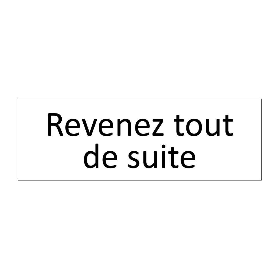 Cette enseigne est idéale pour les commerces, restaurants ou bureaux qui souhaitent informer leurs clients ou visiteurs d'un retour imminent. Elle peut être placée à l'entrée, sur une porte ou à proximité d'une caisse pour indiquer une absence temporaire. En utilisant une formulation polie et accueillante, elle rassure les clients en leur signalant que le service reprendra sous peu. Cette pancarte est parfaite pour maintenir une communication claire et efficace avec votre clientèle.
