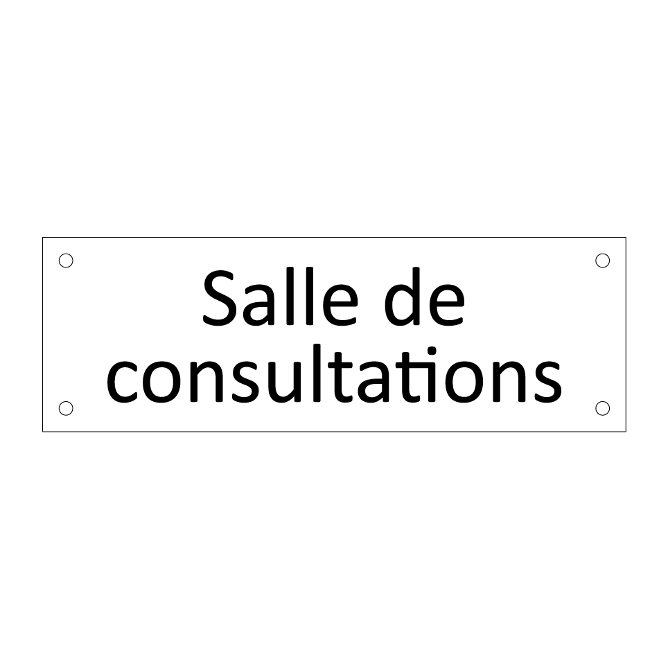 Cette enseigne est idéale pour indiquer l'emplacement d'une salle de consultation dans des environnements médicaux tels que les hôpitaux, cliniques ou cabinets privés. Elle guide les patients et visiteurs vers le bon endroit, facilitant ainsi l'orientation au sein de l'établissement. Placez-la à l'entrée de la pièce concernée ou dans les couloirs pour une visibilité optimale. Cette signalisation en français est particulièrement adaptée pour les établissements francophones ou ceux accueillant une clientèle internationale.