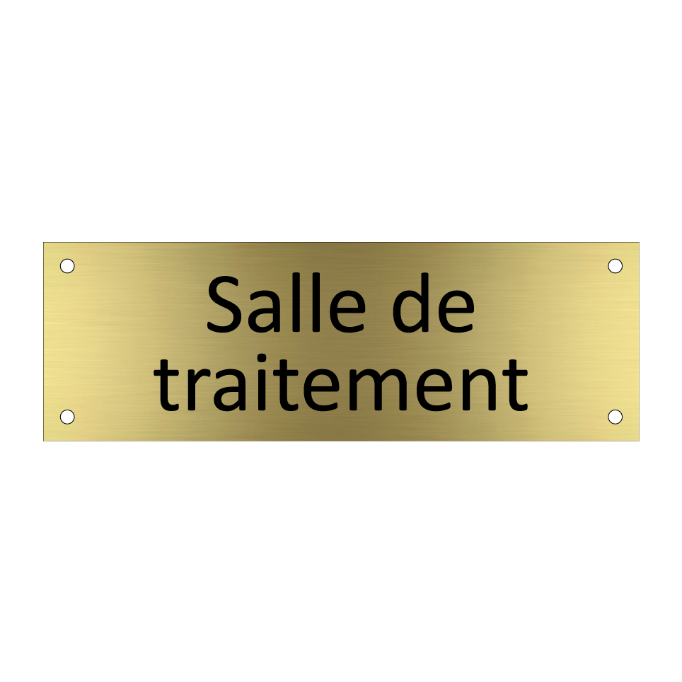 Cette enseigne est idéale pour indiquer l'emplacement d'une salle de traitement dans des environnements médicaux ou de soins. Elle peut être placée à l'entrée de la pièce pour guider le personnel et les visiteurs vers la zone appropriée. Utilisée dans des hôpitaux, cliniques ou centres de santé, elle assure une orientation claire et efficace. Cette signalisation est essentielle pour maintenir un flux organisé et éviter toute confusion dans des espaces où la précision est cruciale.