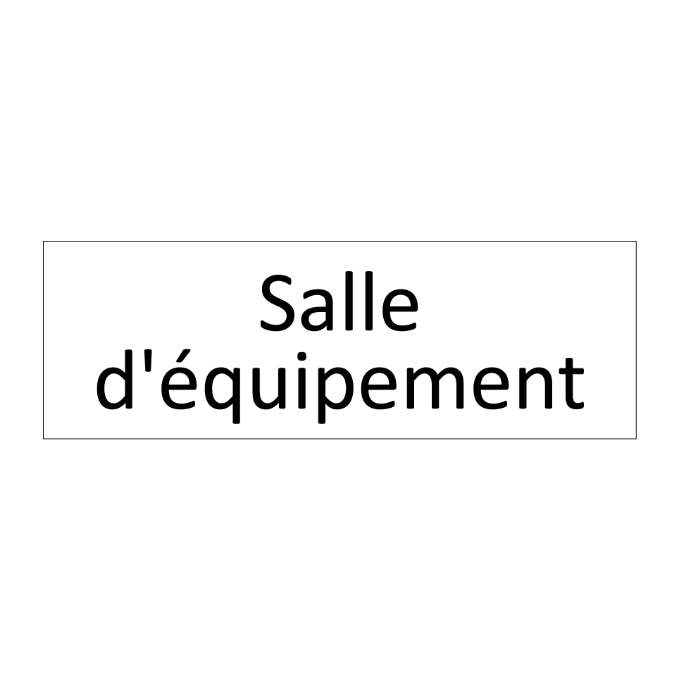 Cette enseigne en français est idéale pour indiquer l'emplacement d'une salle d'équipement. Elle est parfaite pour les bâtiments commerciaux, les centres sportifs ou les établissements scolaires où il est essentiel de guider les visiteurs vers les zones de stockage ou d'équipement. Placez-la à l'entrée de la pièce concernée pour une visibilité optimale. Cette signalisation assure une orientation claire et efficace, facilitant ainsi l'accès aux ressources nécessaires pour le personnel et les visiteurs.