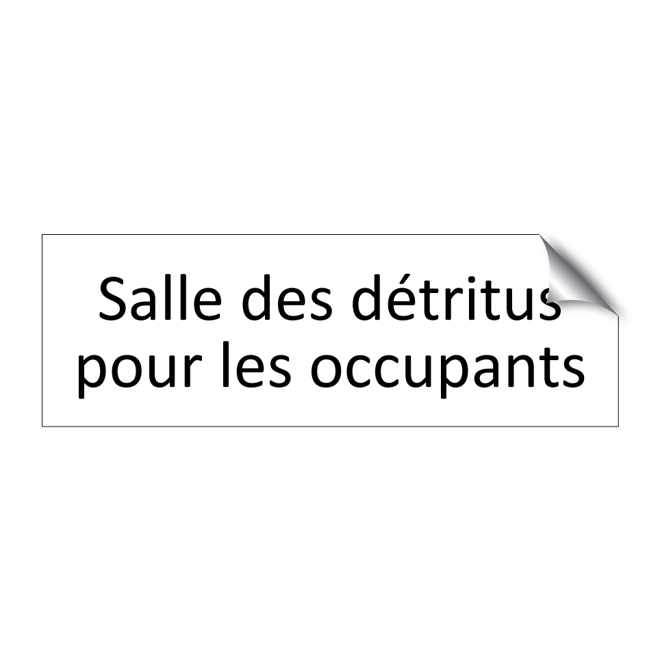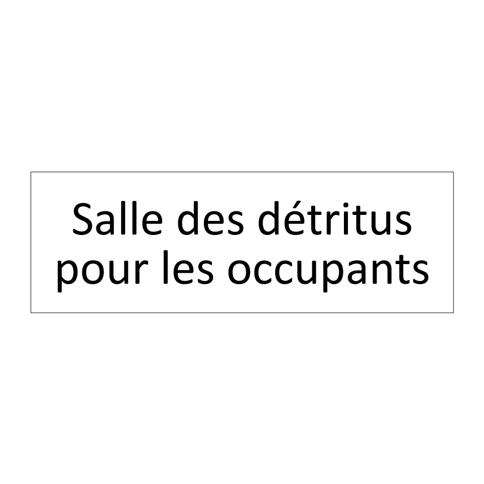 Panneau d'information avec le texte Salle des détritus pour les occupants.