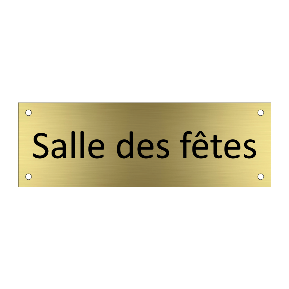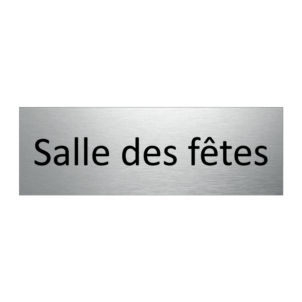Cette enseigne est idéale pour indiquer l'emplacement d'une salle des fêtes, un lieu souvent utilisé pour des événements festifs tels que mariages, anniversaires ou réunions communautaires. Elle peut être placée à l'entrée principale d'un bâtiment ou à l'intérieur pour guider les invités vers la salle appropriée. En installant cette pancarte, vous facilitez l'orientation des visiteurs et ajoutez une touche d'élégance à votre espace événementiel. Parfaite pour les centres communautaires, les mairies ou tout autre lieu accueillant des célébrations.