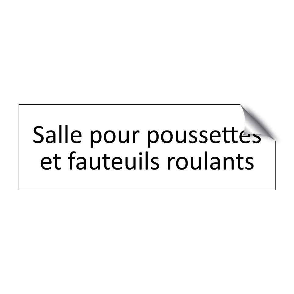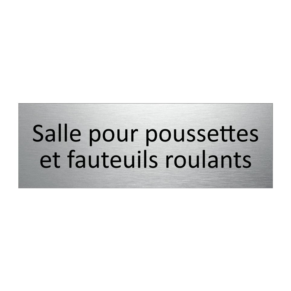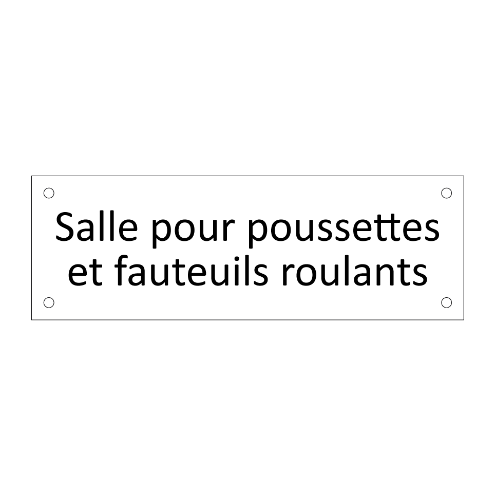 Panneau d'information avec le texte Salle pour poussettes et fauteuils roulants.