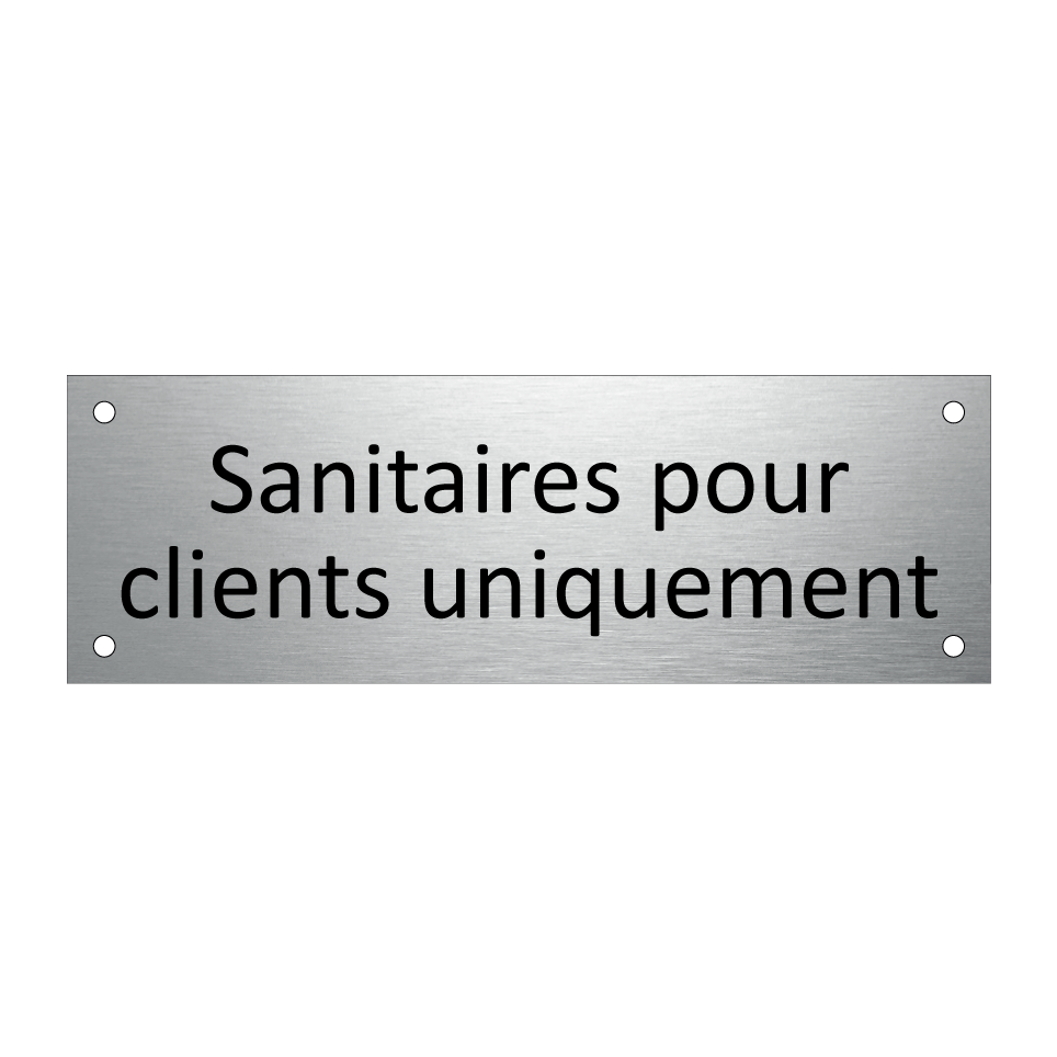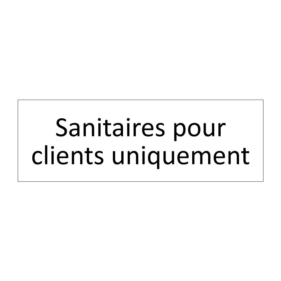 Panneau d'information avec le texte Sanitaires pour clients uniquement.