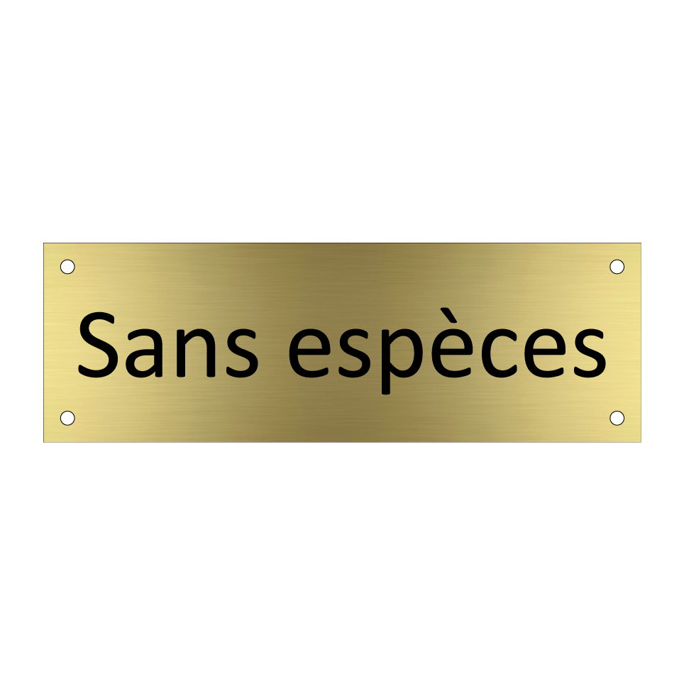 Ce panneau est disponible en Aluminium Brossé, Aluminium Aspect Laiton, Plastique et Autocollant.