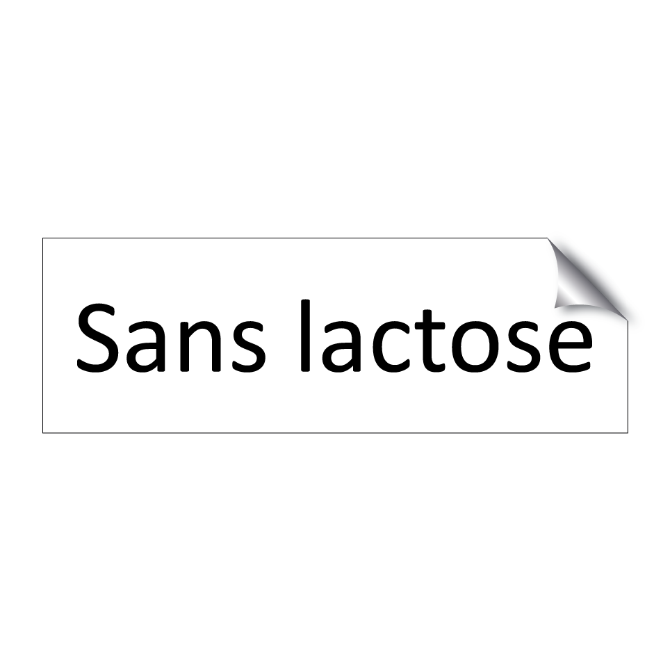 Panneau d'information avec le texte Sans lactose.