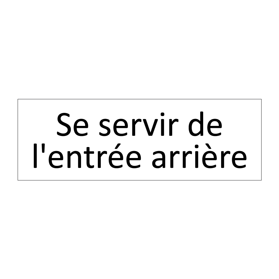 Panneau d'information avec le texte Se servir de l'entrée arrière.