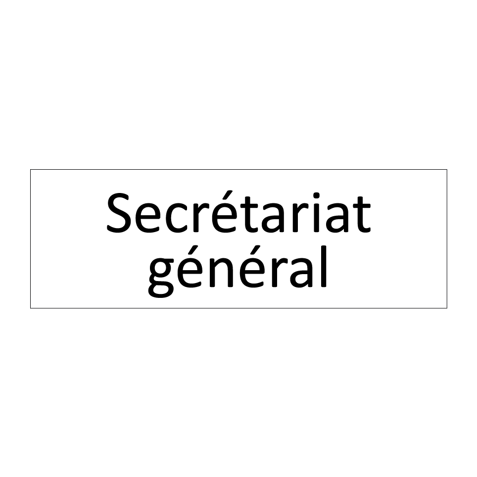 Cette enseigne est idéale pour indiquer l'emplacement du secrétariat général dans un bâtiment administratif ou une institution. Elle peut être placée à l'entrée d'un bureau, dans un couloir ou à proximité d'une réception pour guider les visiteurs et le personnel. En utilisant un langage clair et précis, elle facilite l'orientation et assure une communication efficace au sein de l'organisation. Parfaite pour les environnements professionnels, elle contribue à une signalisation cohérente et professionnelle.