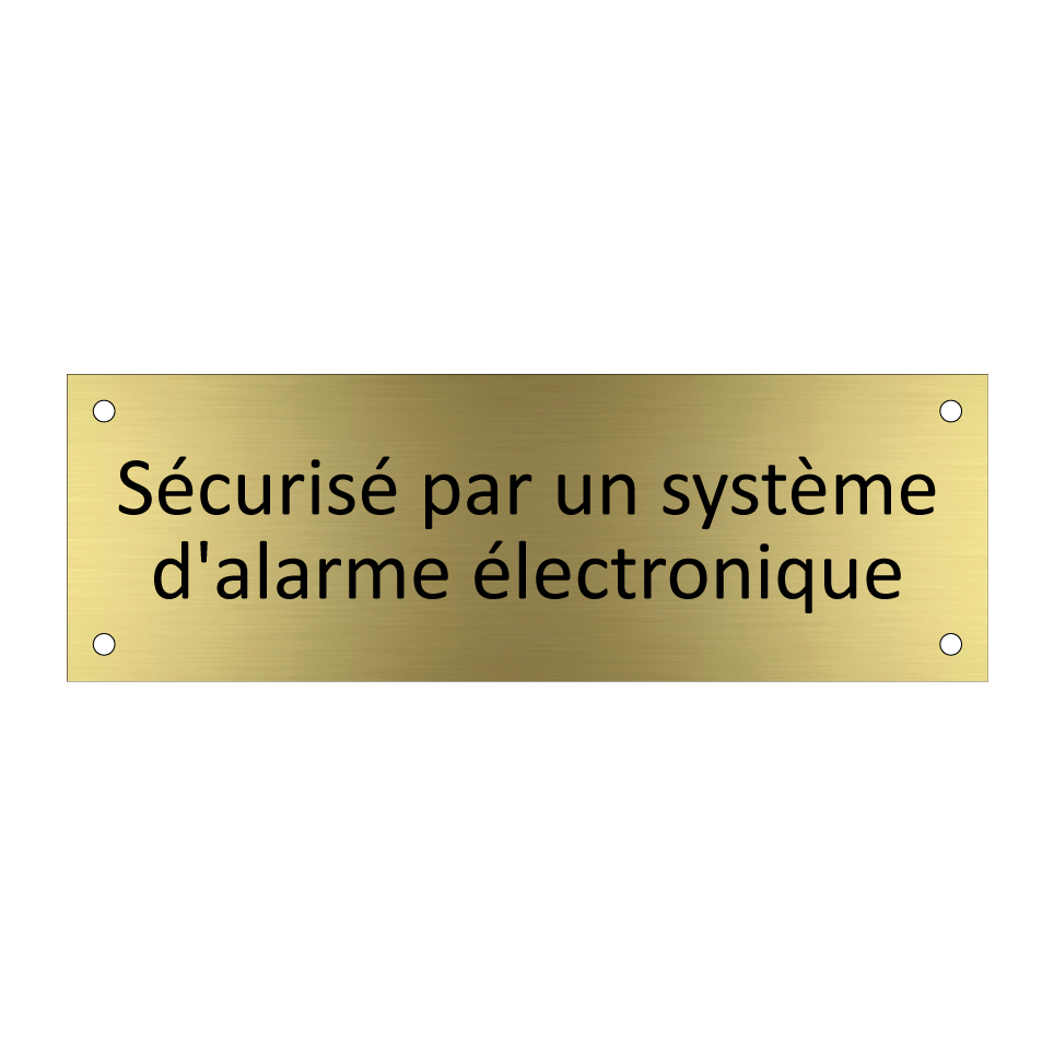 Panneau d'information avec le texte Sécurisé par un système d'alarme électronique.