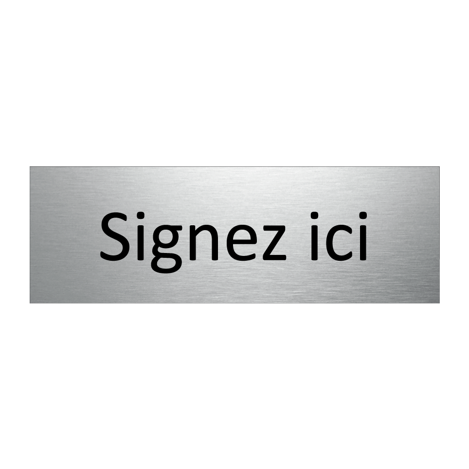 Cette enseigne est idéale pour les environnements où une signature est requise, comme les bureaux, les banques ou les agences immobilières. Elle guide les clients et visiteurs vers l'endroit où ils doivent apposer leur signature, facilitant ainsi le processus administratif. Placez-la à l'entrée d'une salle de réunion, près d'un comptoir de réception ou dans une zone d'attente pour assurer une communication claire et efficace. Cette signalisation en français est parfaite pour les entreprises francophones ou les établissements accueillant un public international.