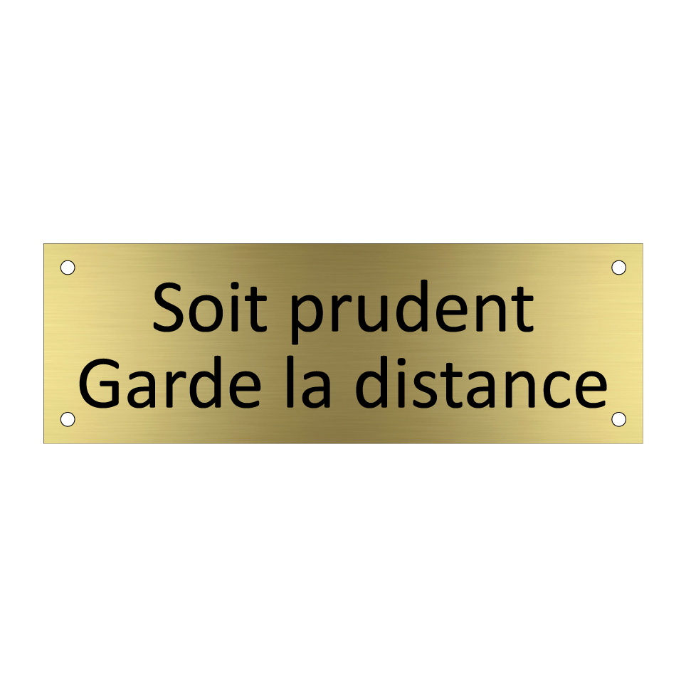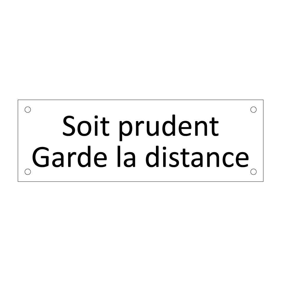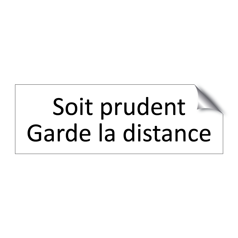 Panneau d'information avec le texte Soit prudent Garde la distance.
