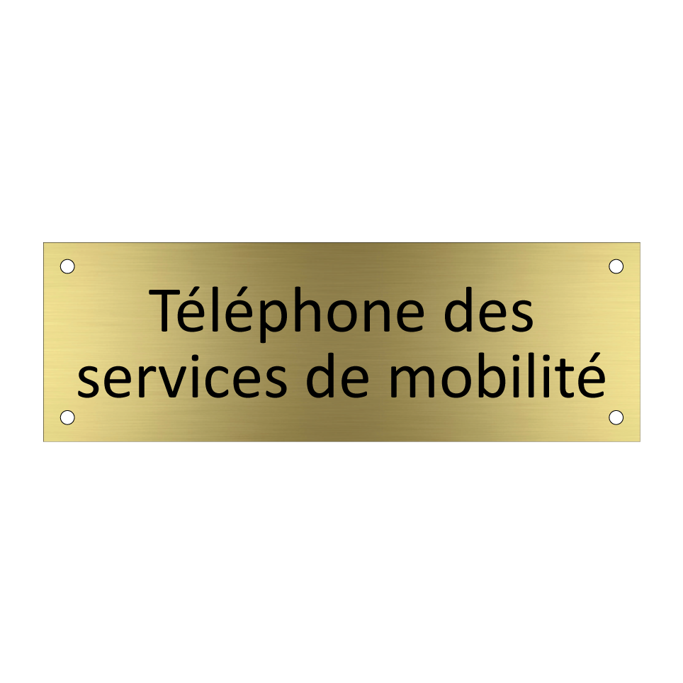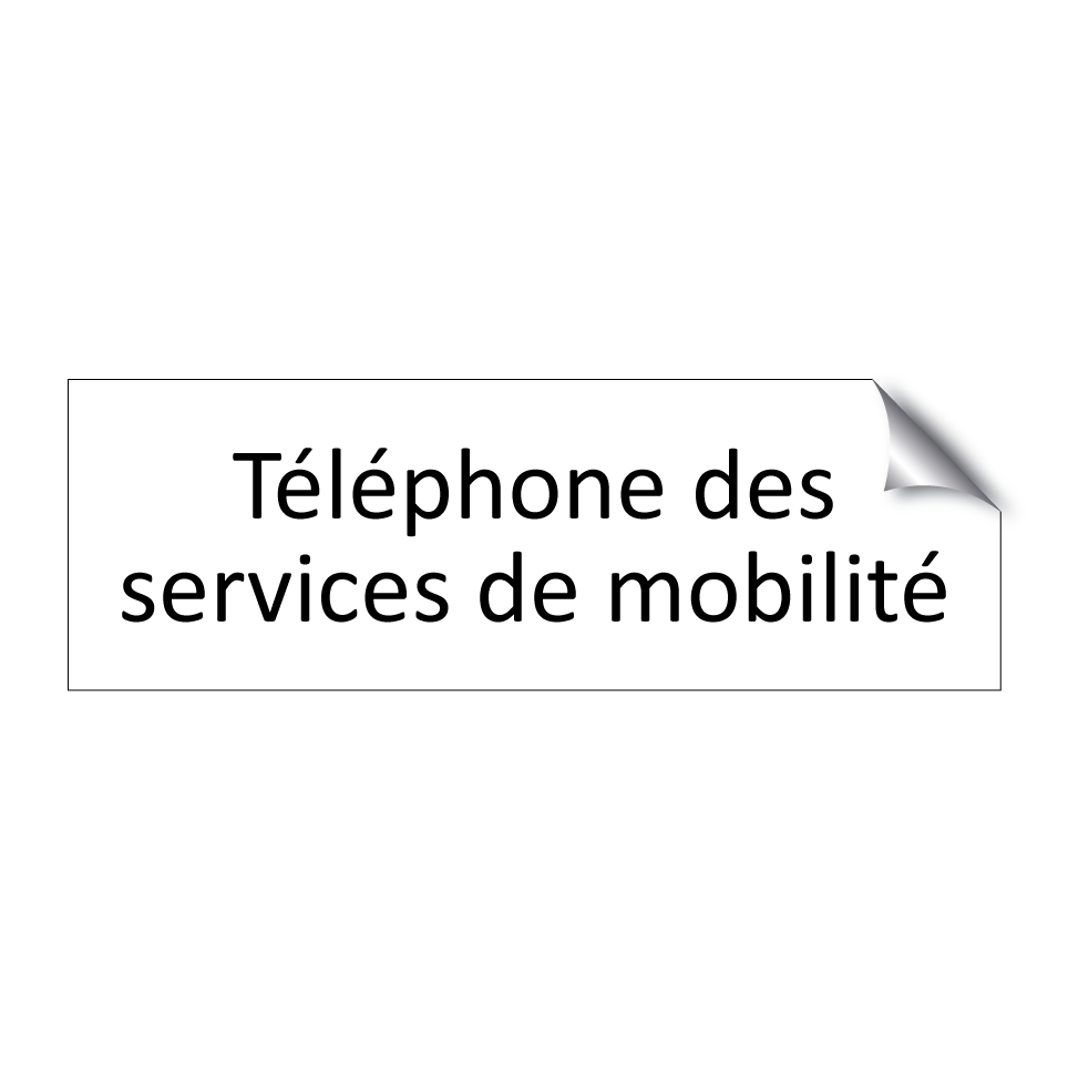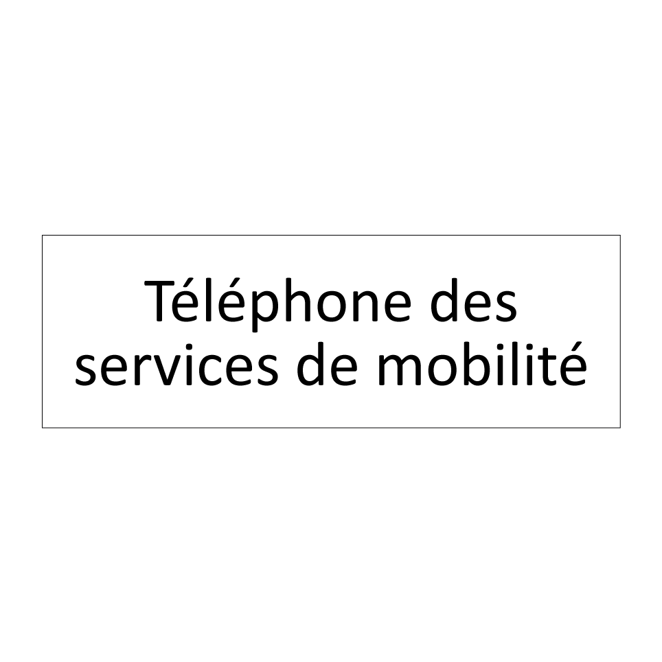 Panneau d'information avec le texte Téléphone des services de mobilité.