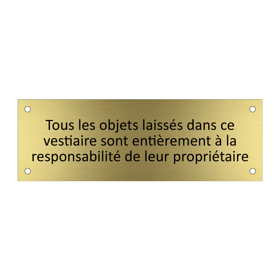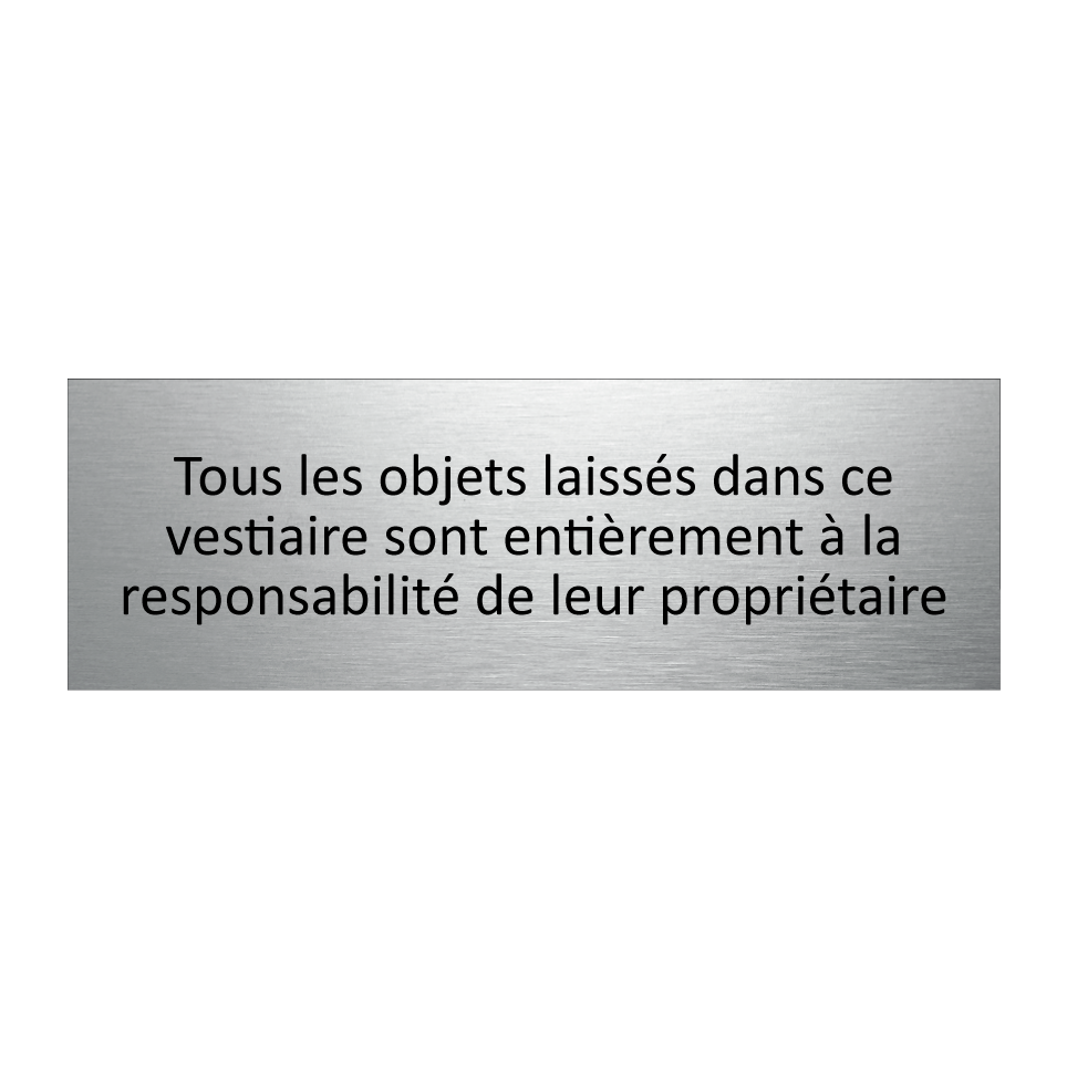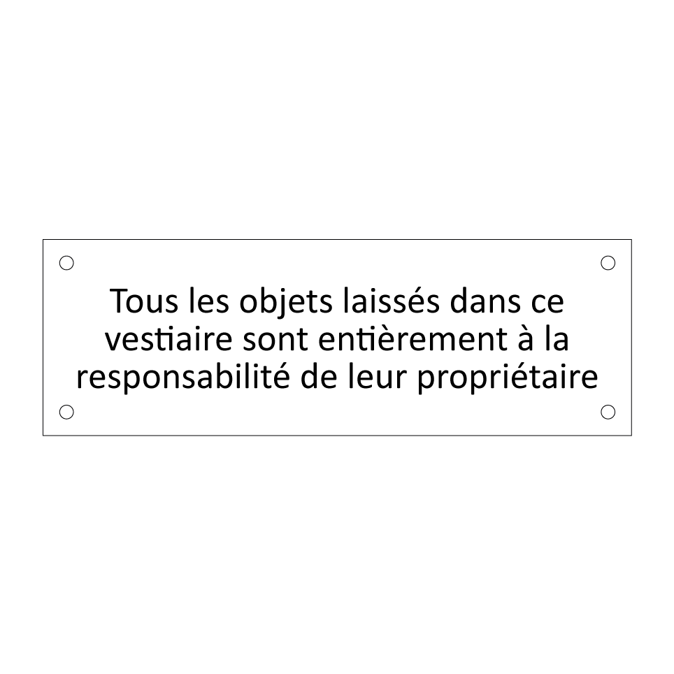 Panneau d'information avec le texte Tous les objets laissés dans ce vestiaire sont entièrement à la responsabilité de leur propriétaire.
