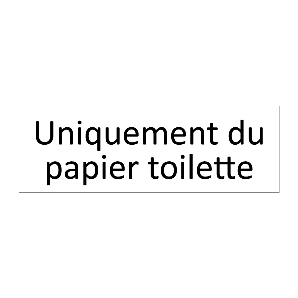 Cette pancarte est idéale pour les toilettes publiques, les bureaux ou les établissements commerciaux où il est essentiel de rappeler aux utilisateurs de ne jeter que du papier hygiénique dans les toilettes. Elle sert à prévenir les obstructions et à maintenir la propreté des installations sanitaires. Placez-la à un endroit bien visible, comme sur la porte des toilettes ou à proximité des distributeurs de papier toilette, pour garantir que le message soit clairement communiqué à tous les utilisateurs.