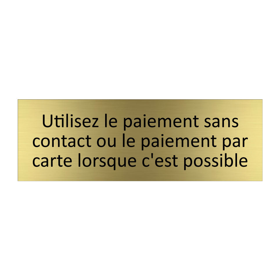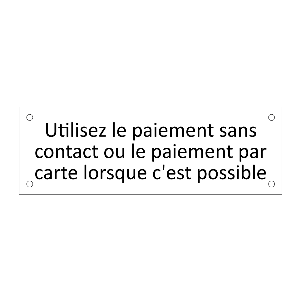 Panneau d'information avec le texte Utilisez le paiement sans contact ou le paiement par carte lorsque c'est possible.