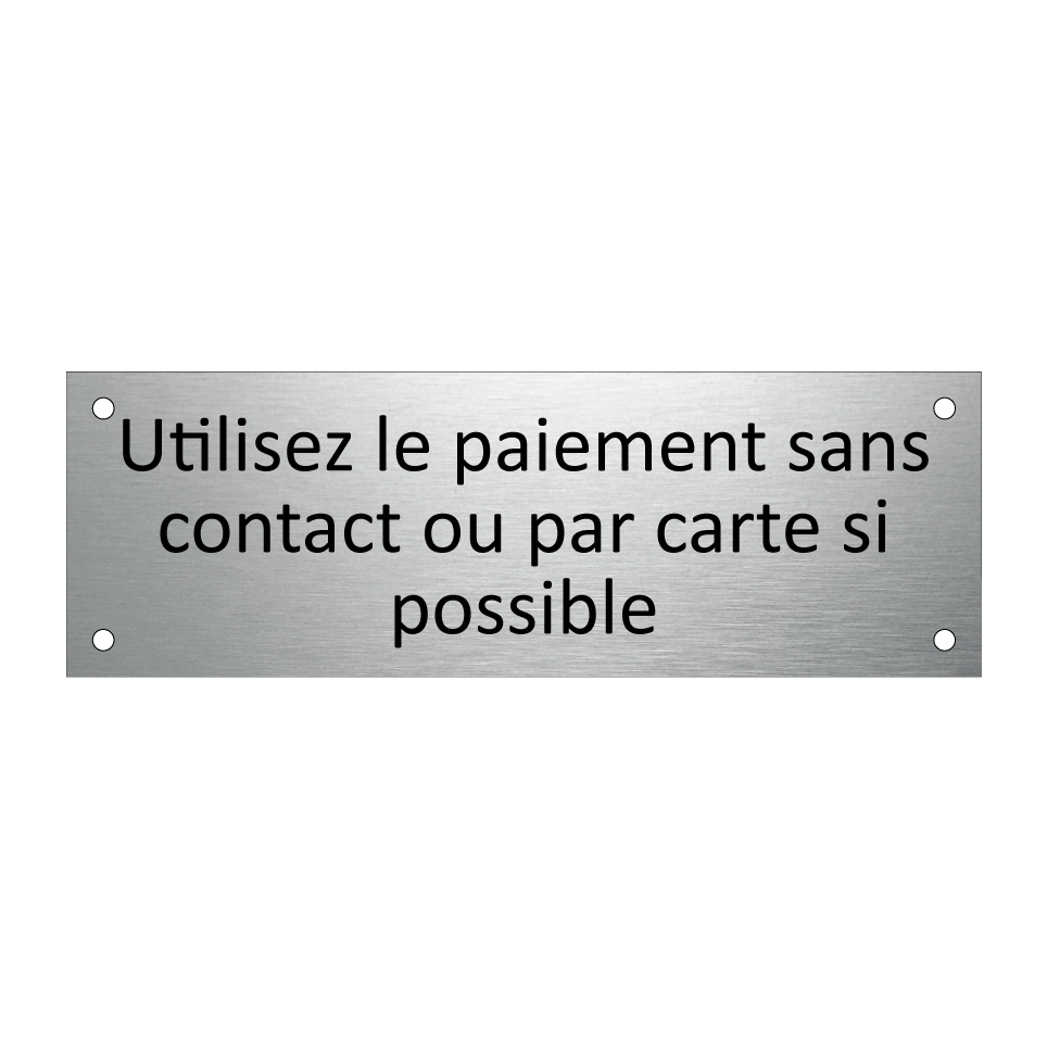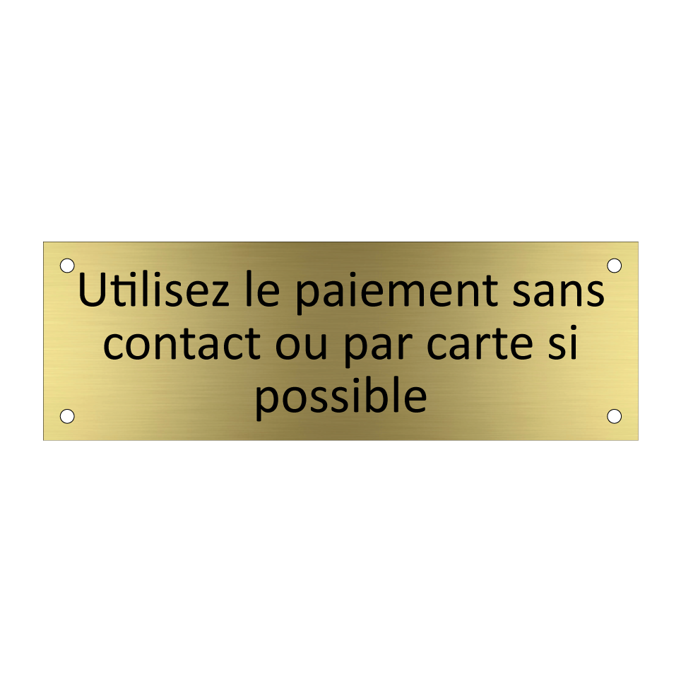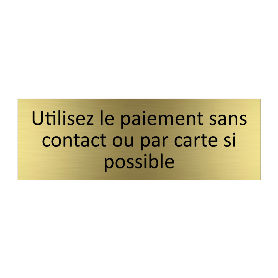 Panneau d'information avec le texte Utilisez le paiement sans contact ou par carte si possible.