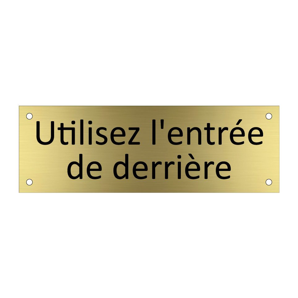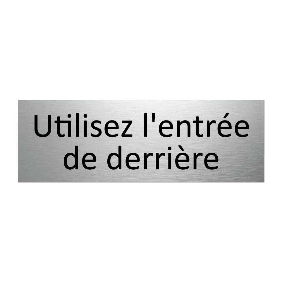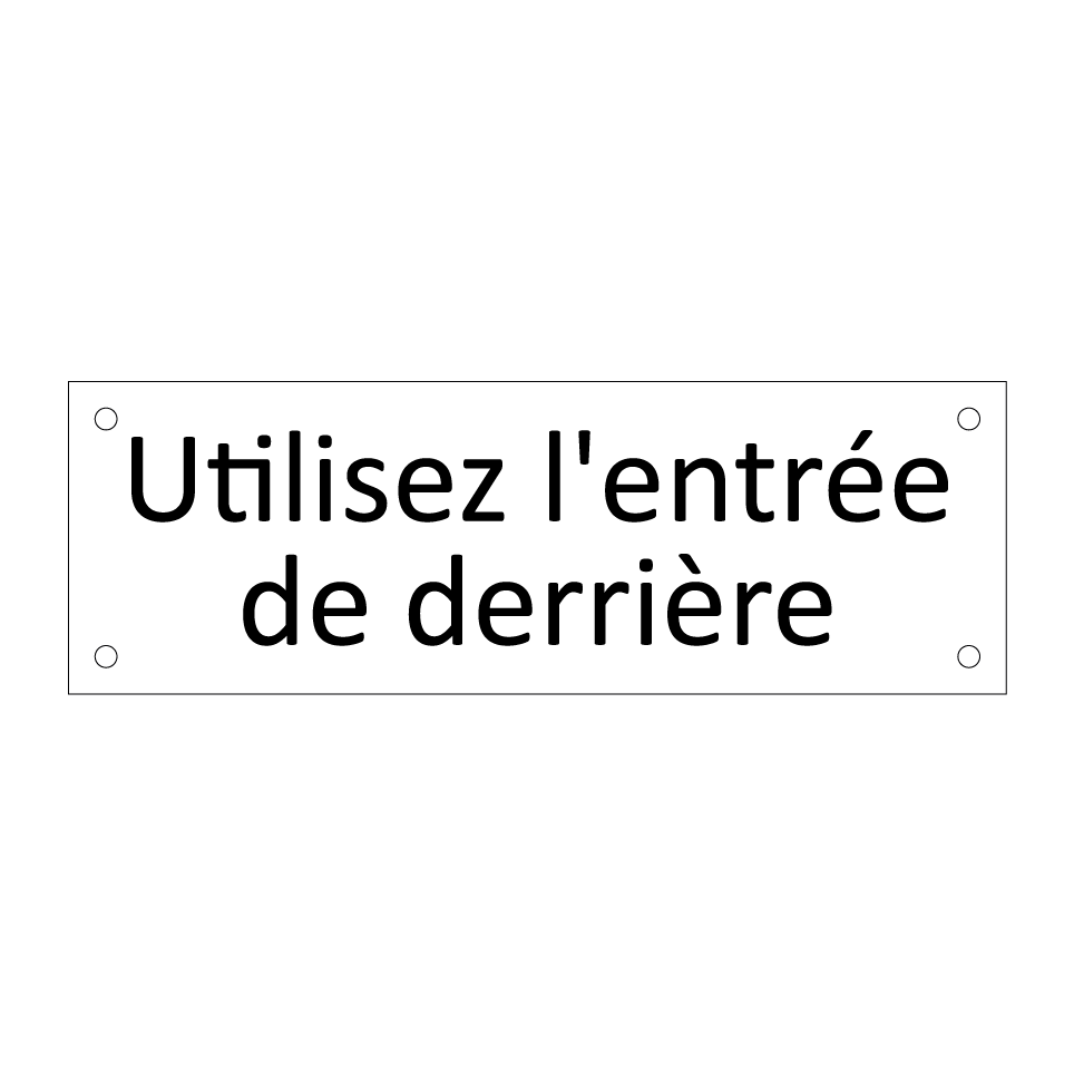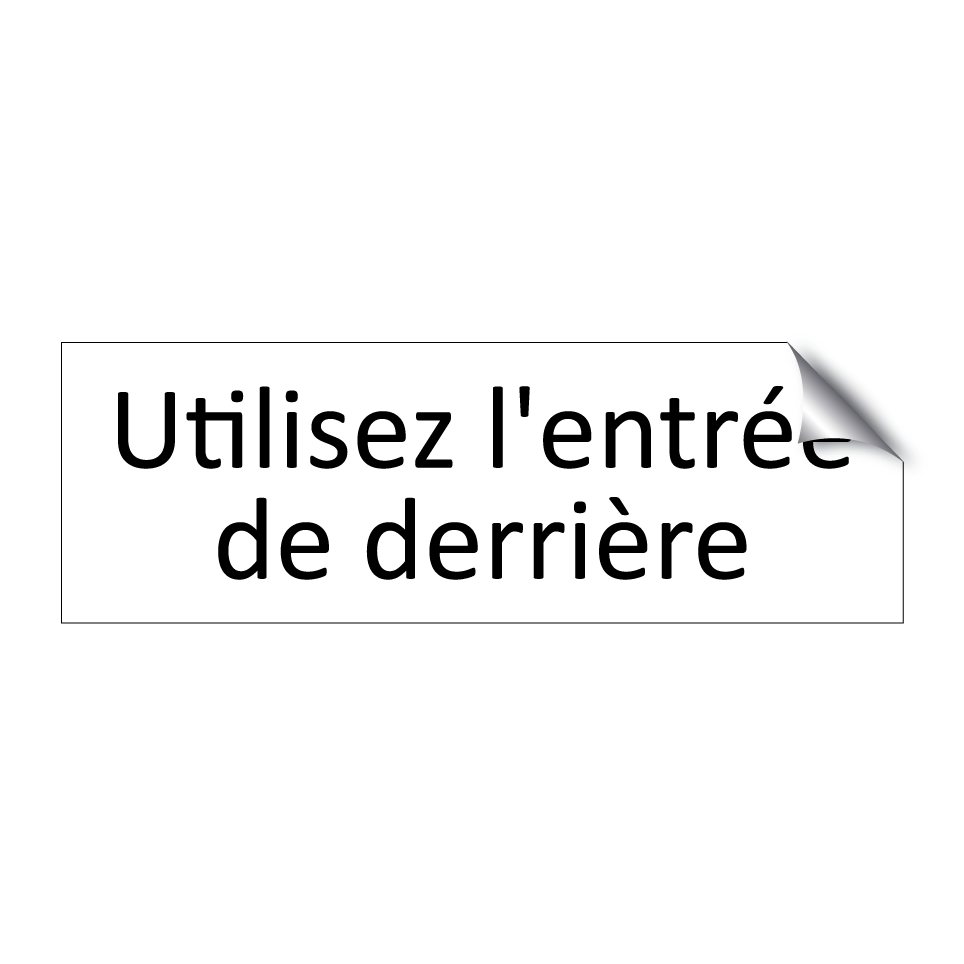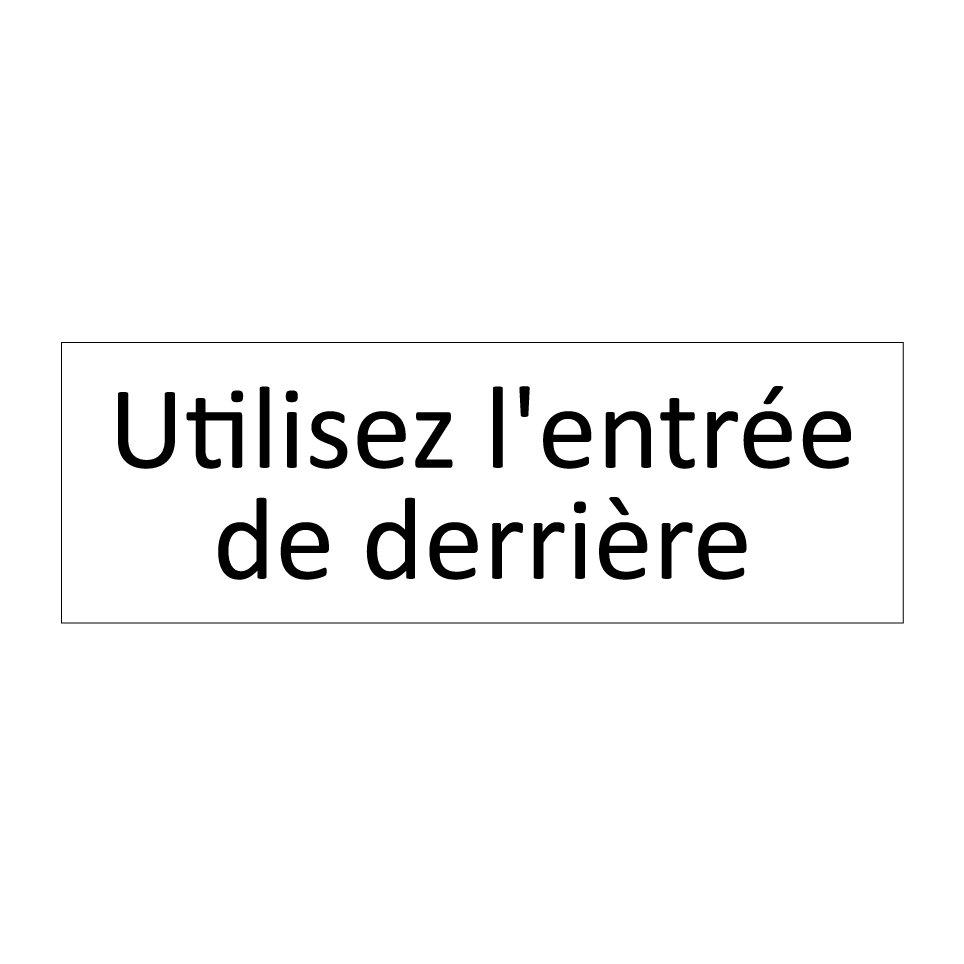 Panneau d'information avec le texte Utilisez l'entrée de derrière.