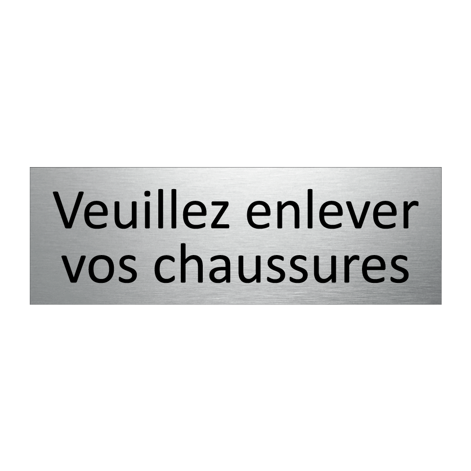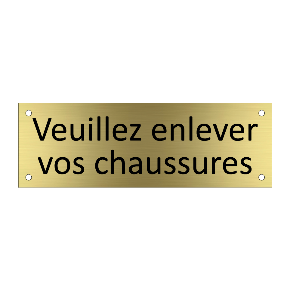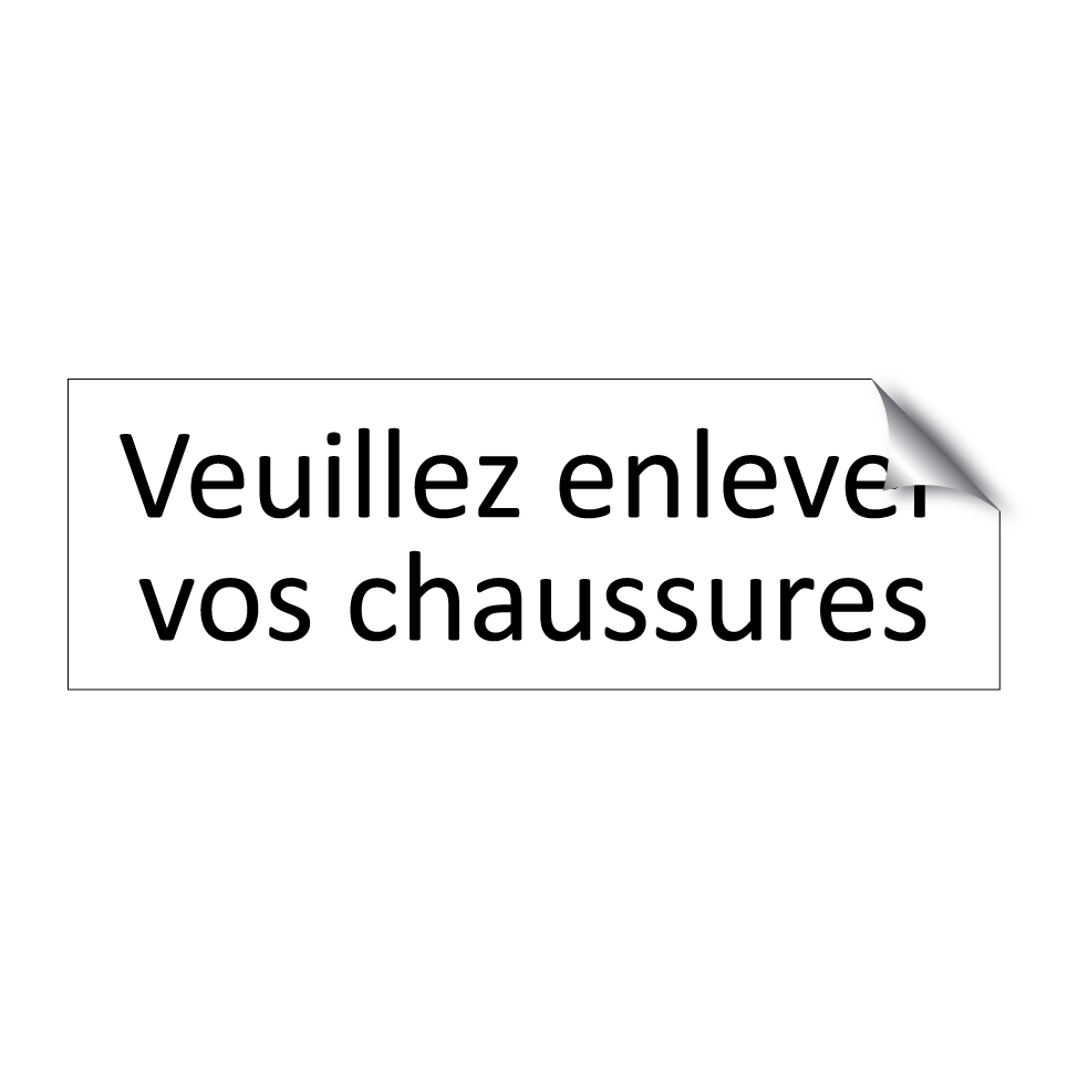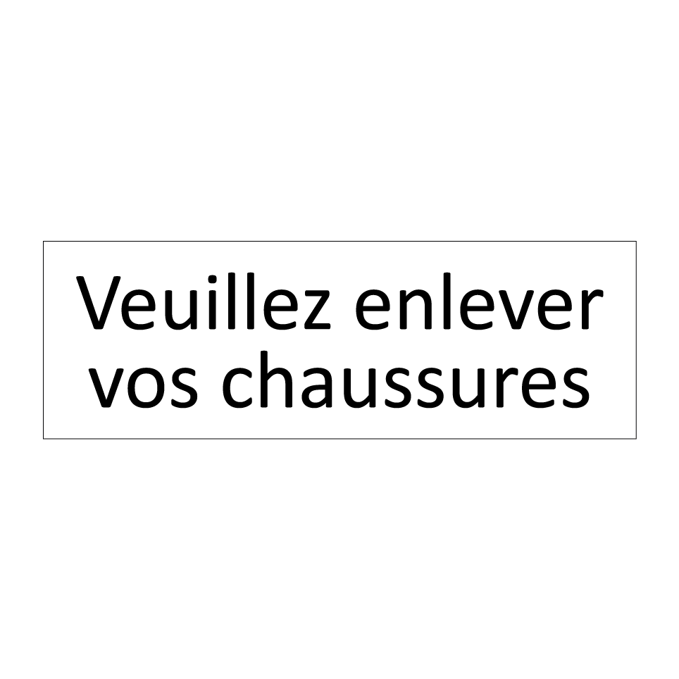 Panneau d'information avec le texte Veuillez enlever vos chaussures.