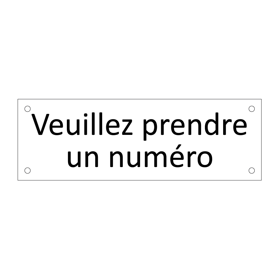 Panneau d'information avec le texte Veuillez prendre un numéro.