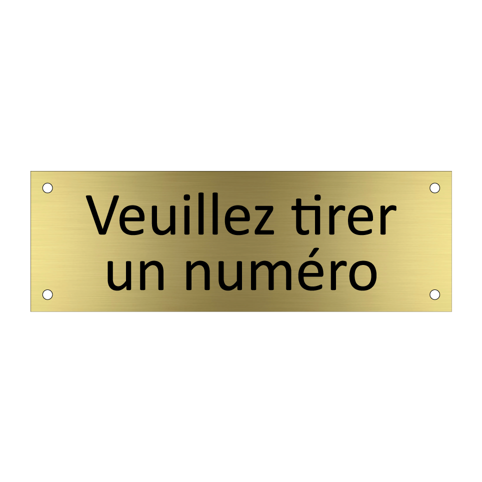 Ce panneau est disponible en Aluminium Brossé, Aluminium Aspect Laiton, Plastique et Autocollant.