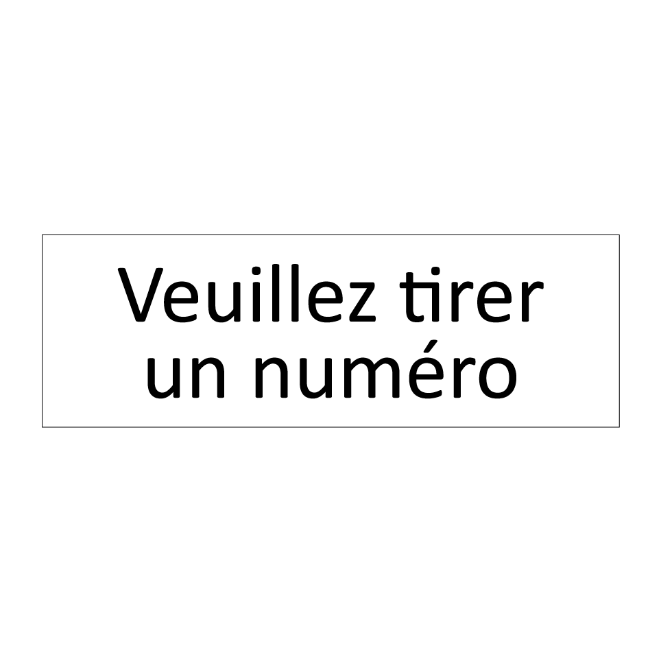 Panneau d'information avec le texte Veuillez tirer un numéro.