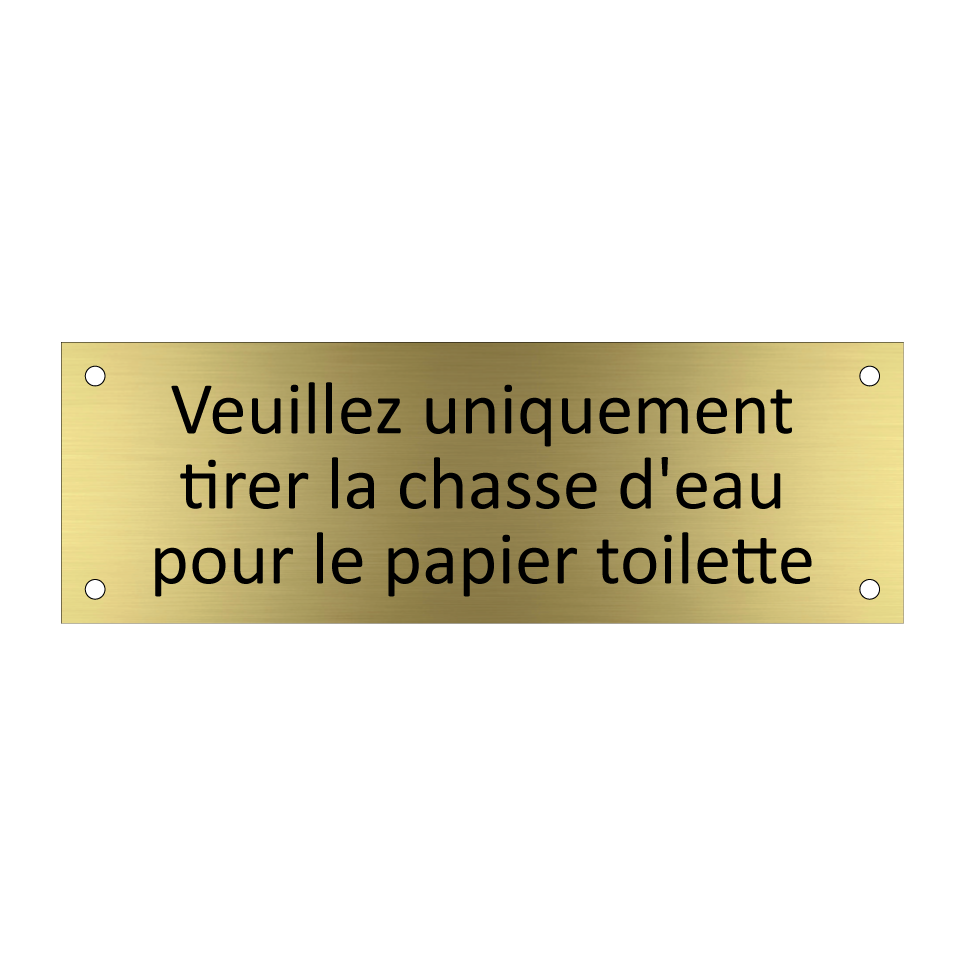 Ce panneau est disponible en Aluminium Brossé, Aluminium Aspect Laiton, Plastique et Autocollant.