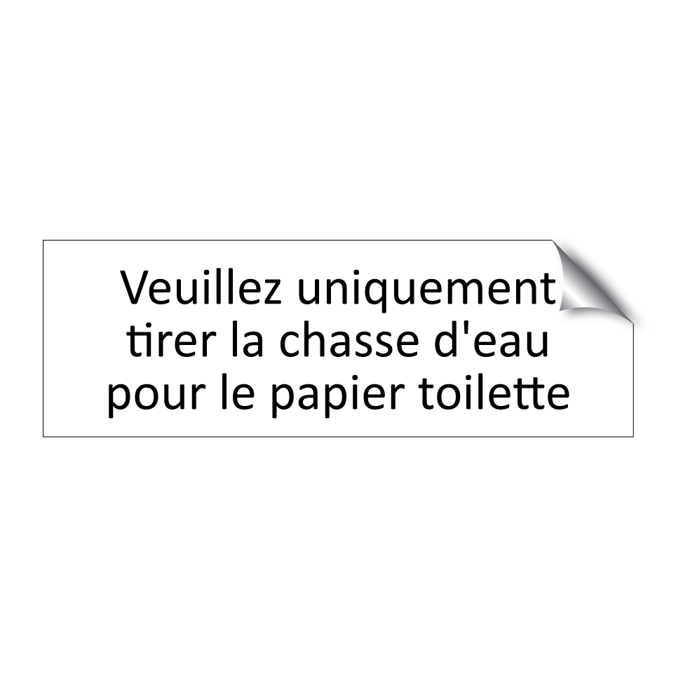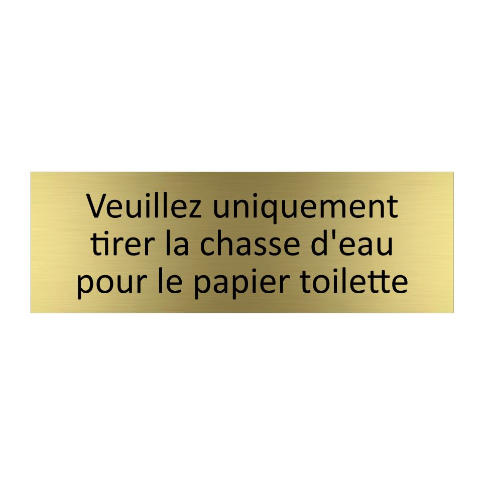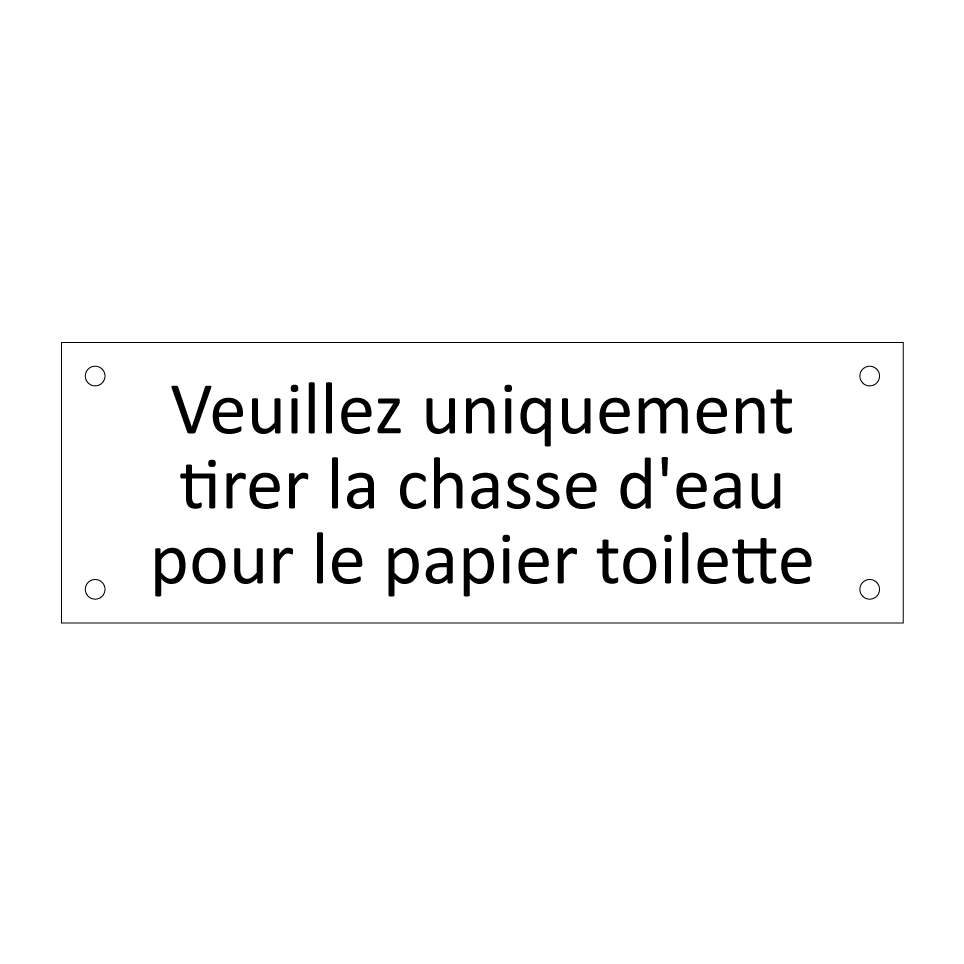 Panneau d'information avec le texte Veuillez uniquement tirer la chasse d'eau pour le papier toilette.