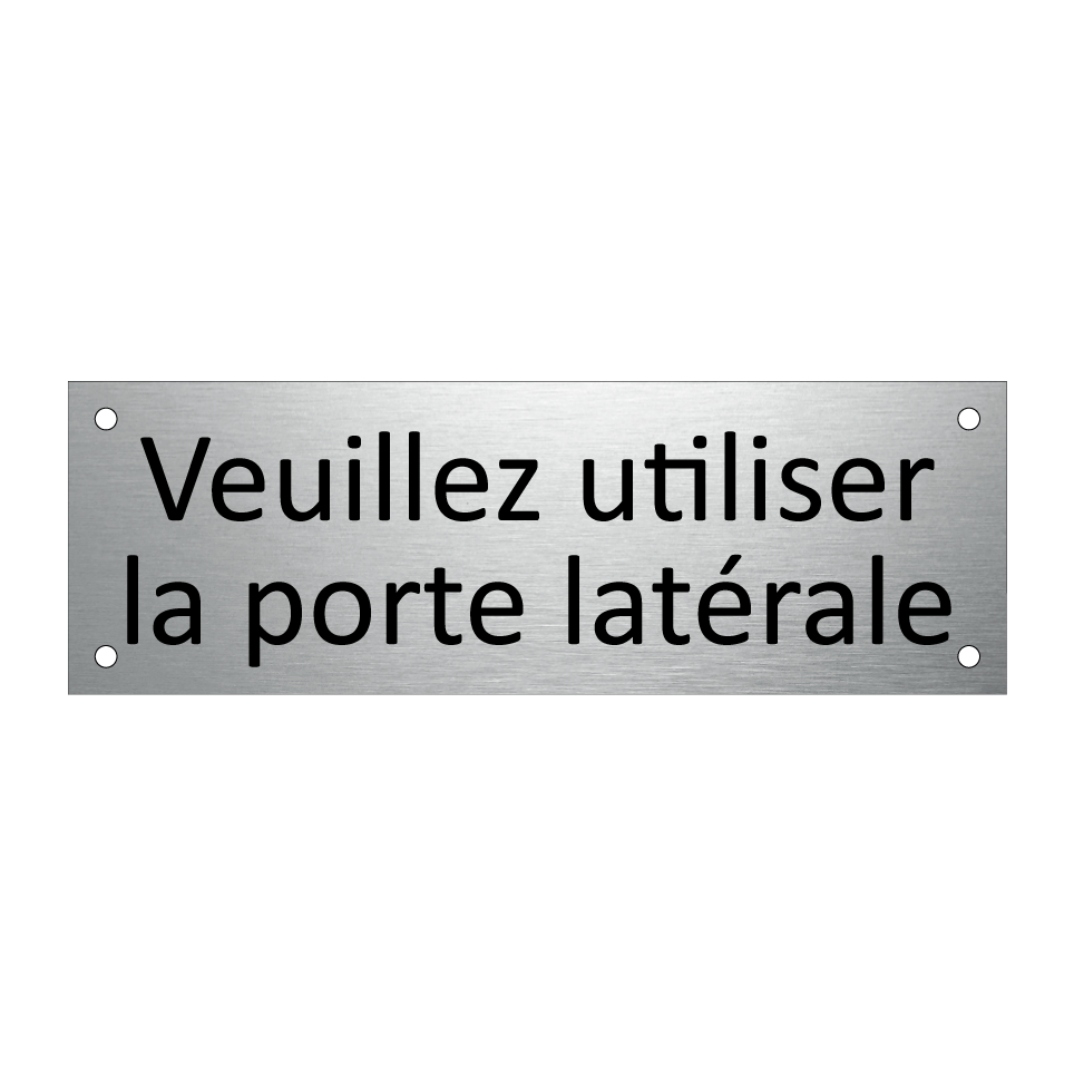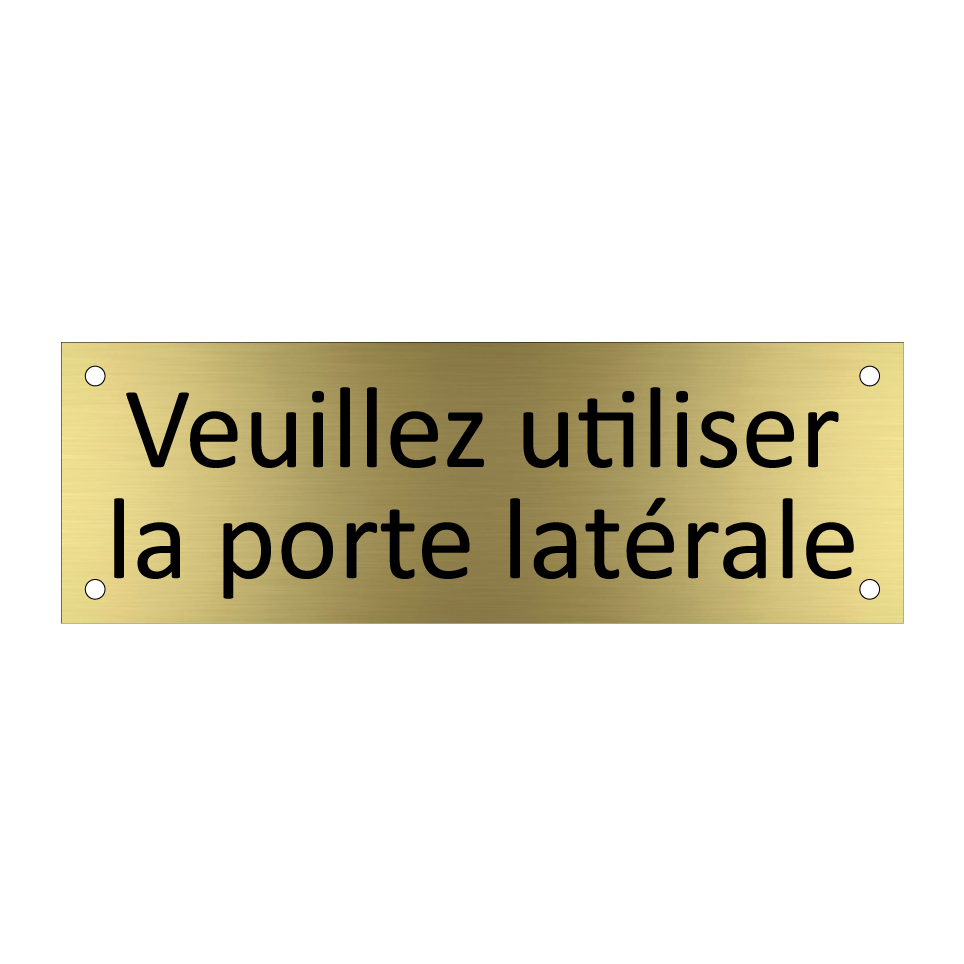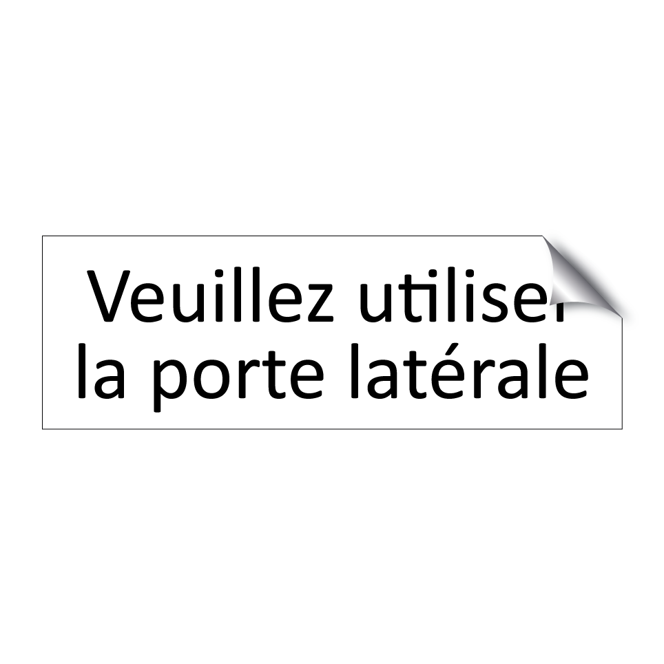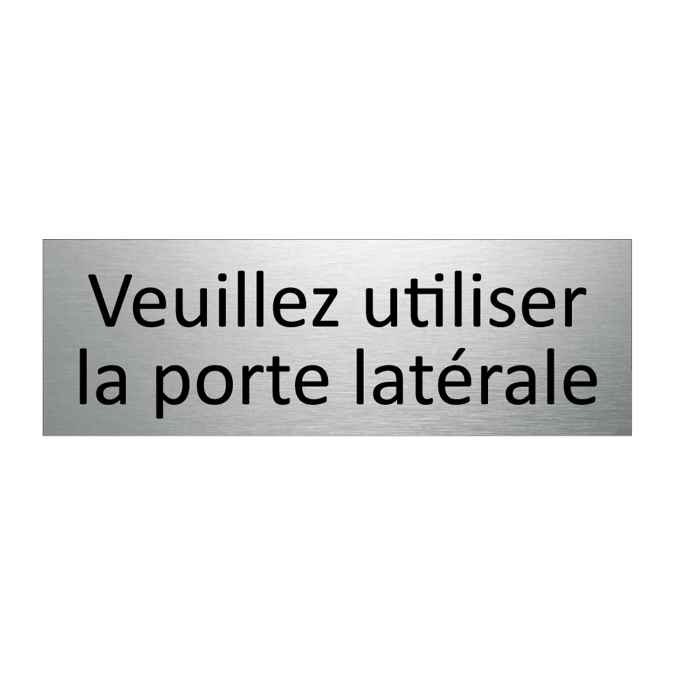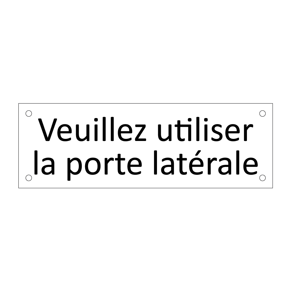 Panneau d'information avec le texte Veuillez utiliser la porte latérale.